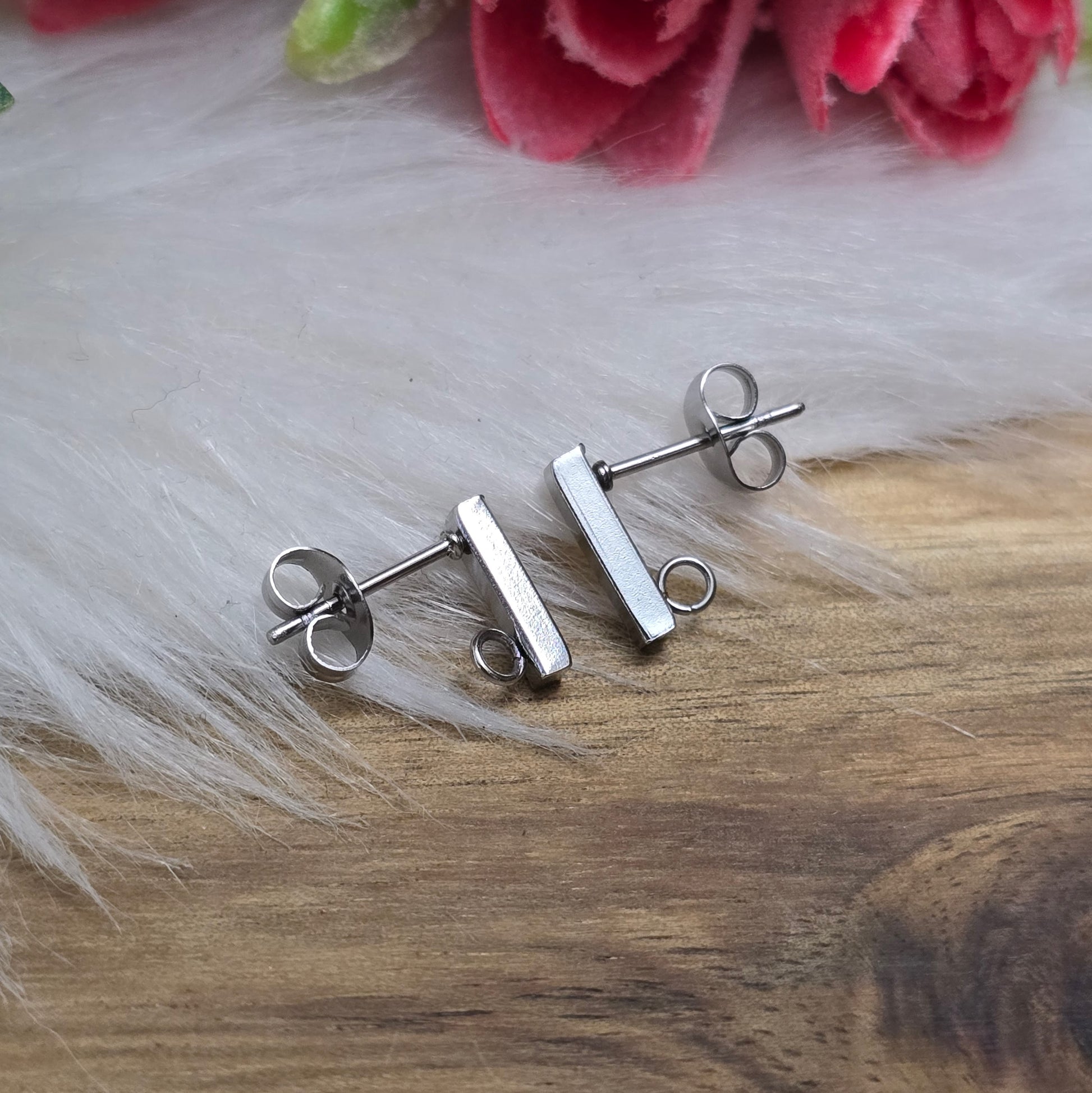 Ohrstecker Stäbchen mit Öse aus 304 Edelstahl, silberfarbig
