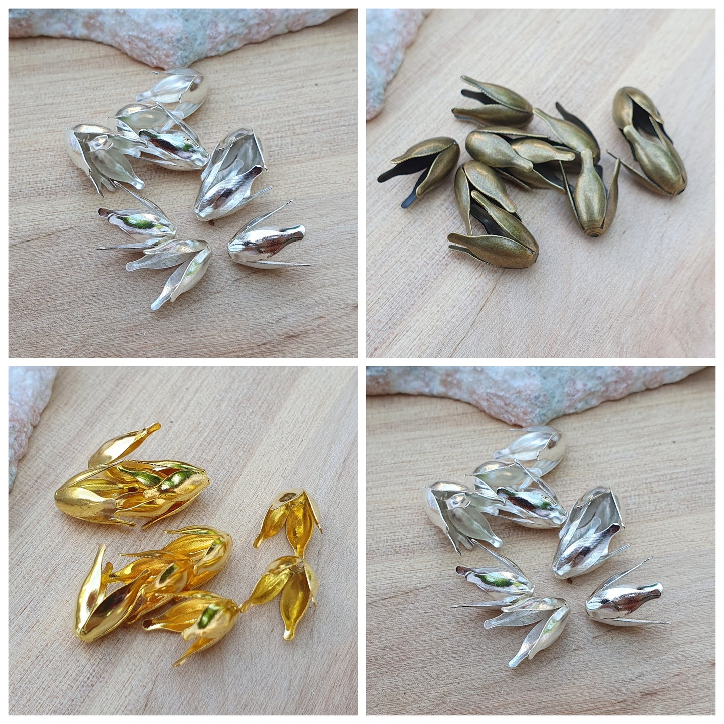 Unser Set mit 10 konischen Zierkappen ist ein absolutes Must-Have für alle Schmuckherstellungs-Enthusiasten. Diese Zierkappen verleihen Ihren handgefertigten Schmuckstücken einen floralen und ansprechenden Akzent.