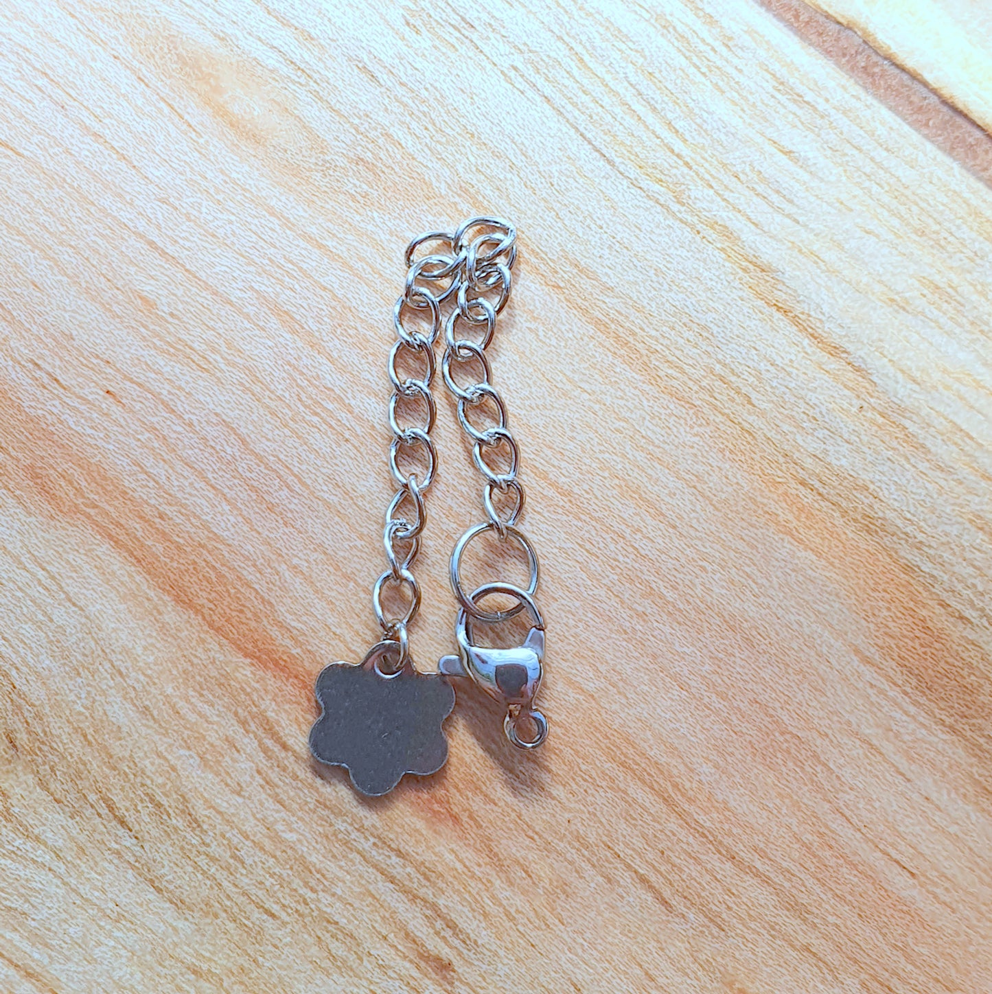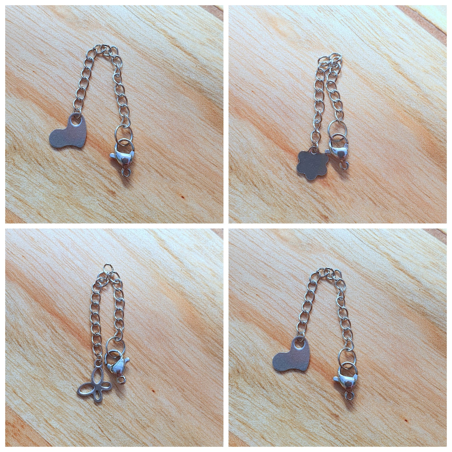 1x Edelstahl Verlängerungskette, mit Karabiner, 4,5cm lang, Extender Chain, Kettenverlängerung, Herz, Blume, Schmetterling