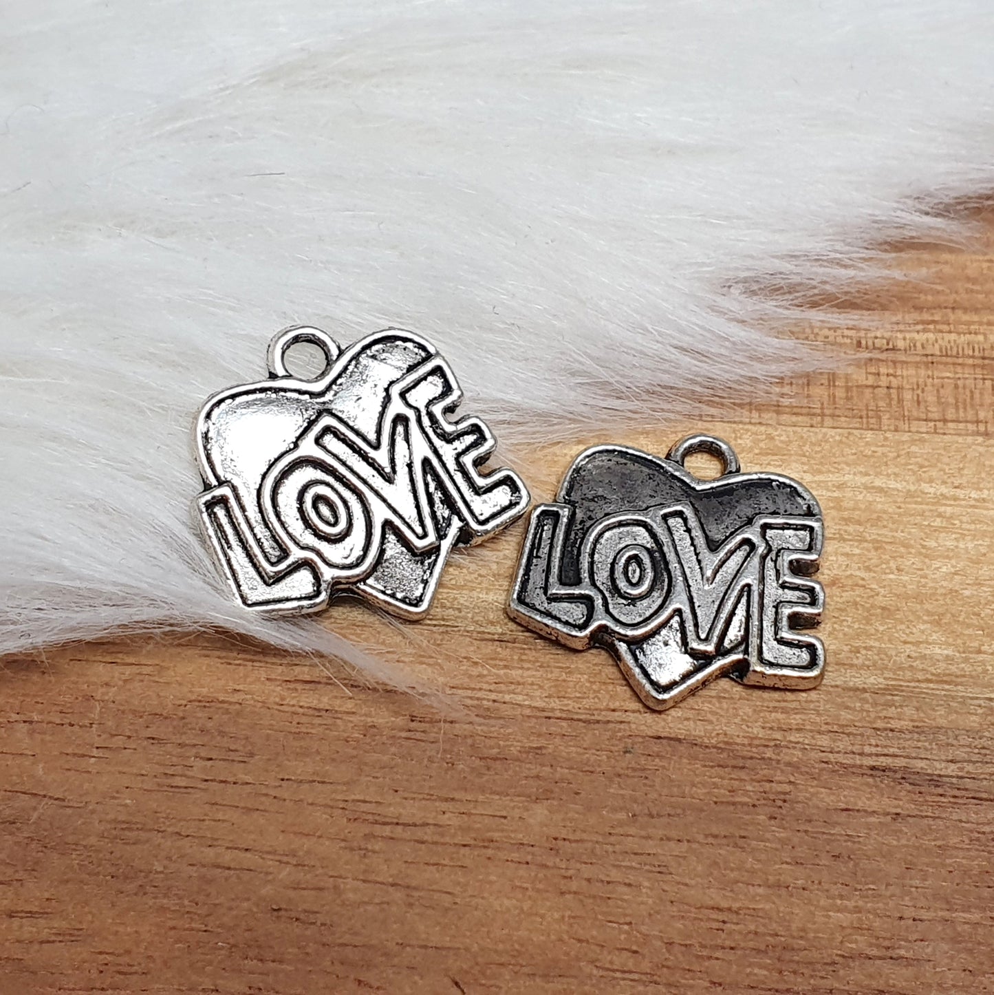 2 Anhänger, Charms Herz mit Aufschrift "Love".