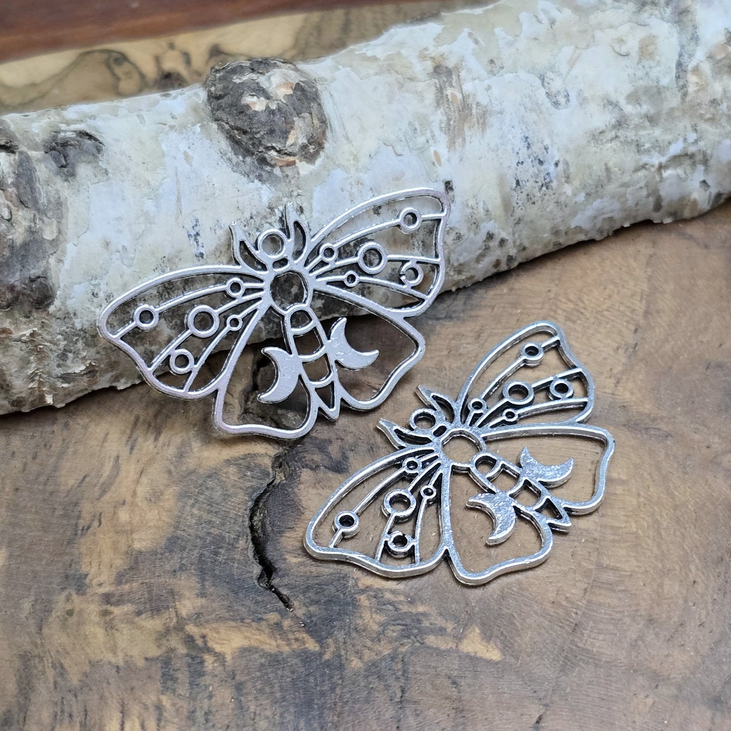 2 Anhänger Motte mit Monden in antik silberfarbig, 22x36mm