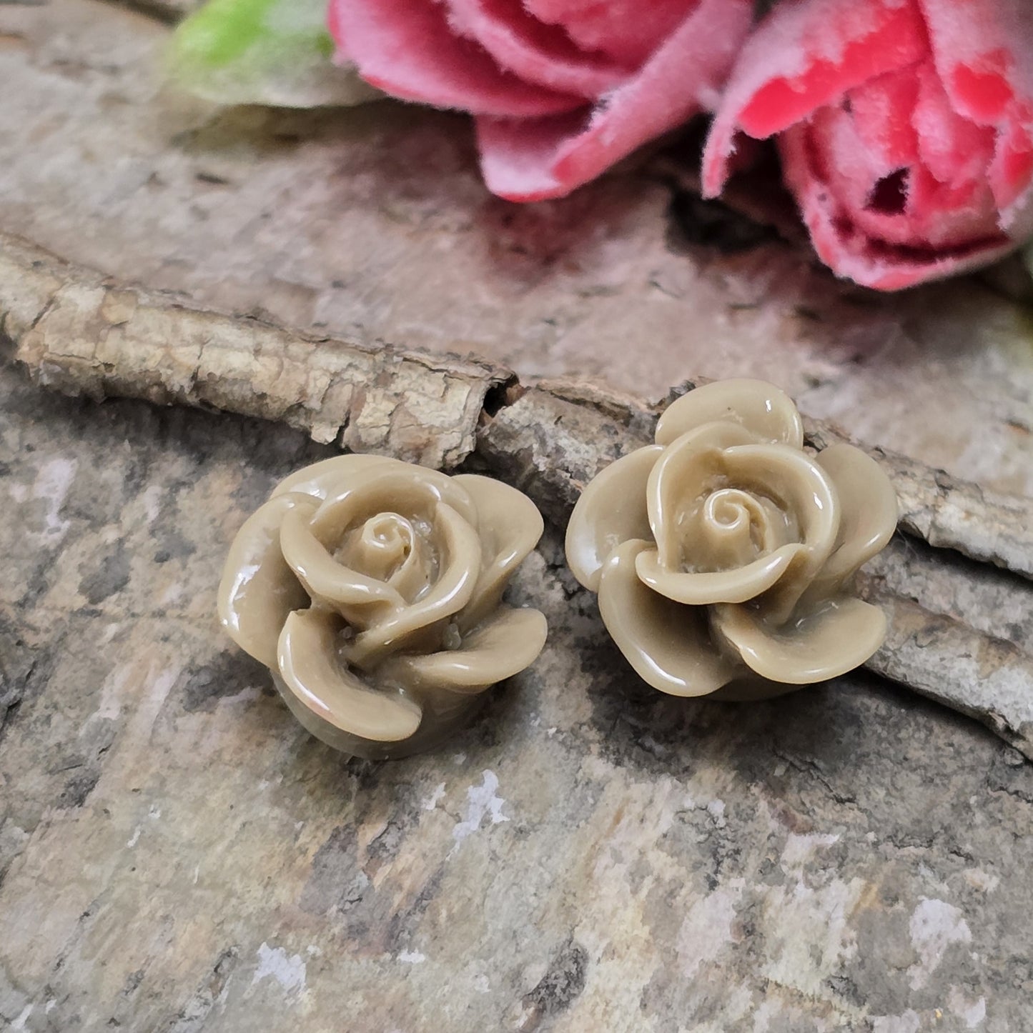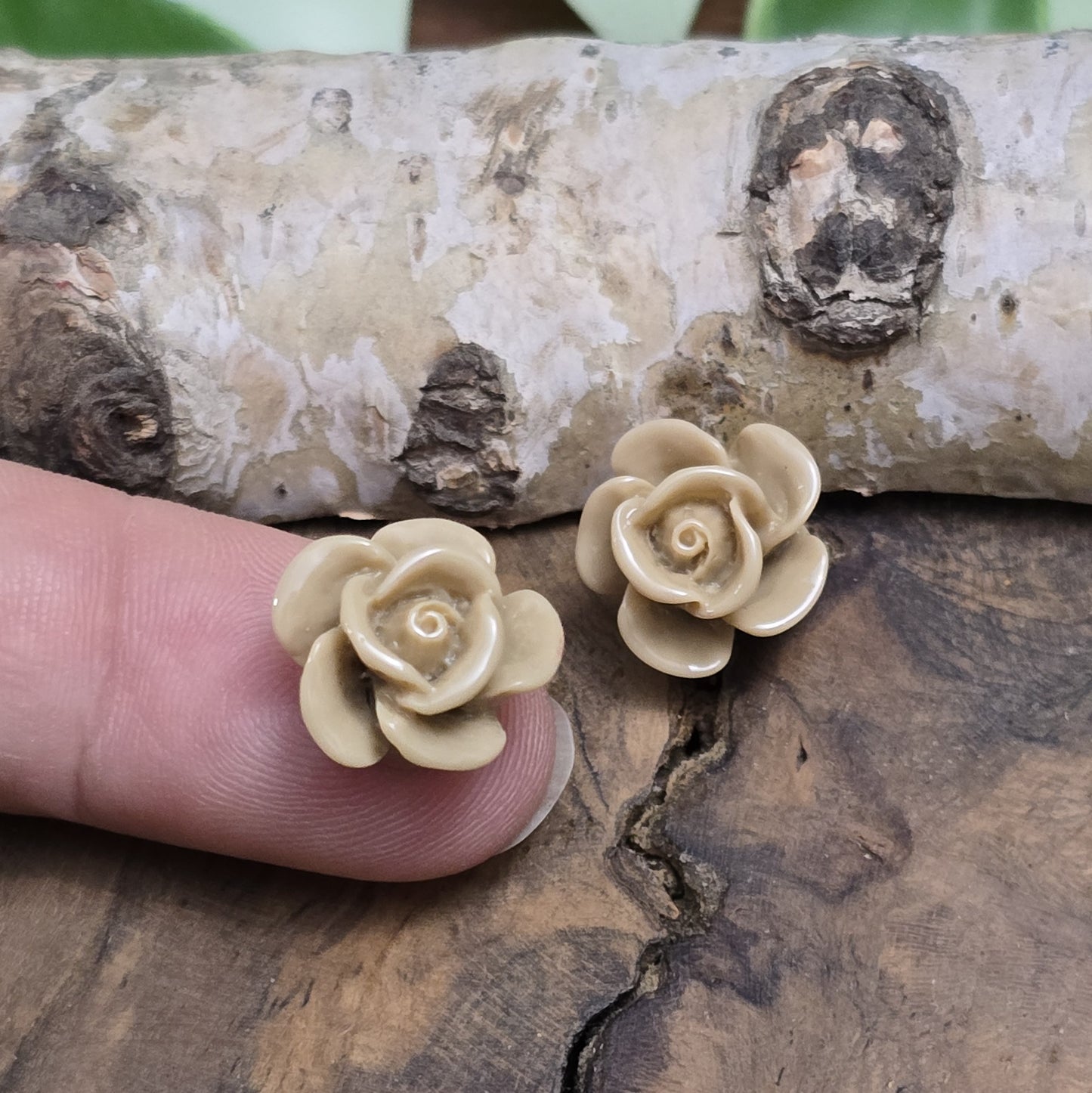2 Cabochons Rose - 14mm - Cappuccino, für Ohrschmuck, Ringe, Manschettenknöpfe