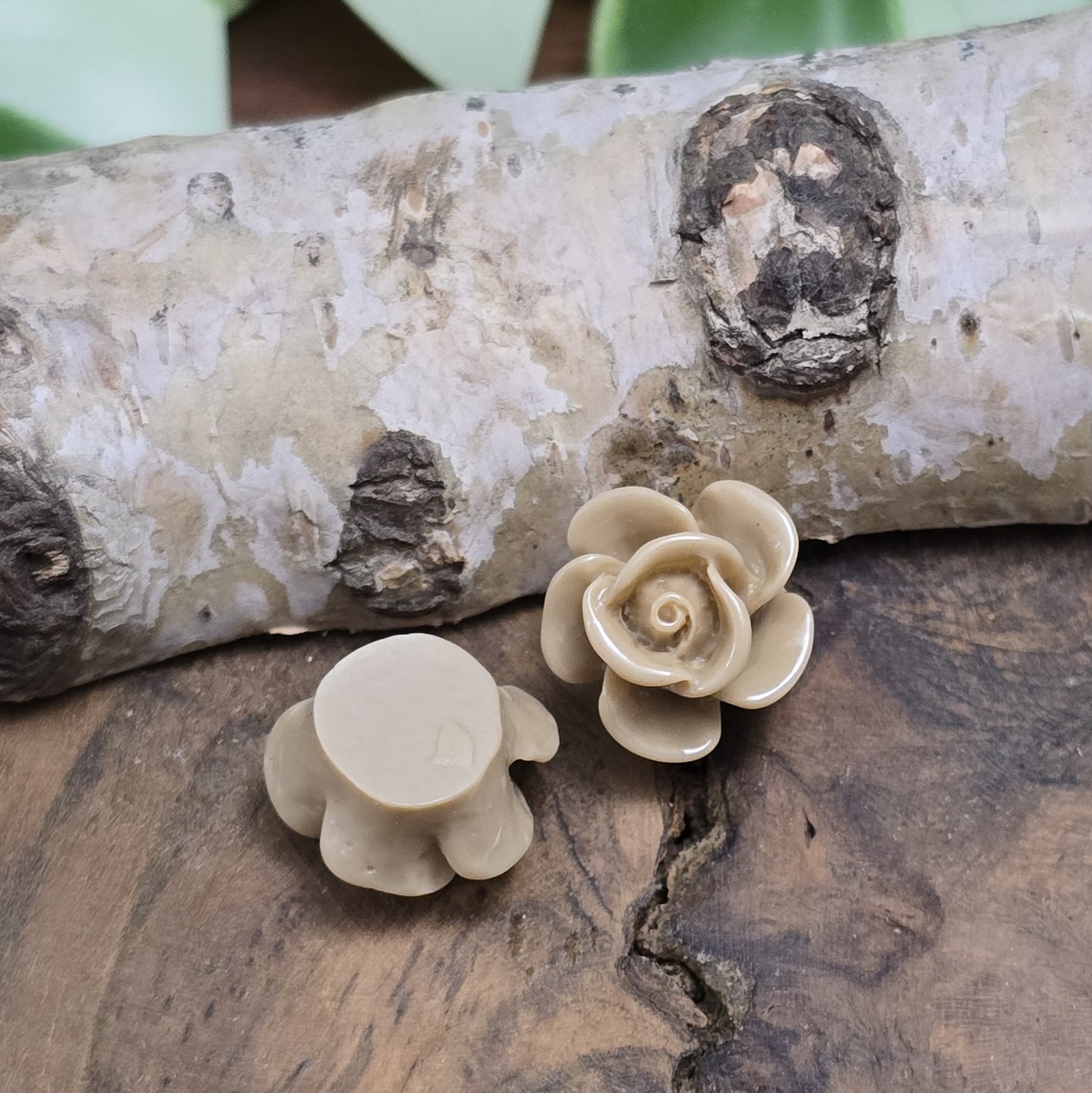 2 Cabochons Rose – 14mm – Cappuccino – Warme Akzente für deine Schmuckkreationen ☕🌹