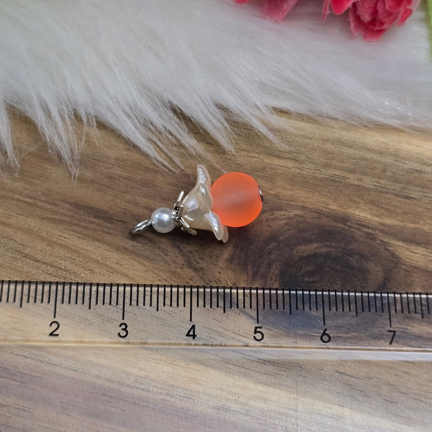 2 handgemachte Anhänger mit matten orangen Glasperlen & weißen Acrylblütenkäppchen - 20mm