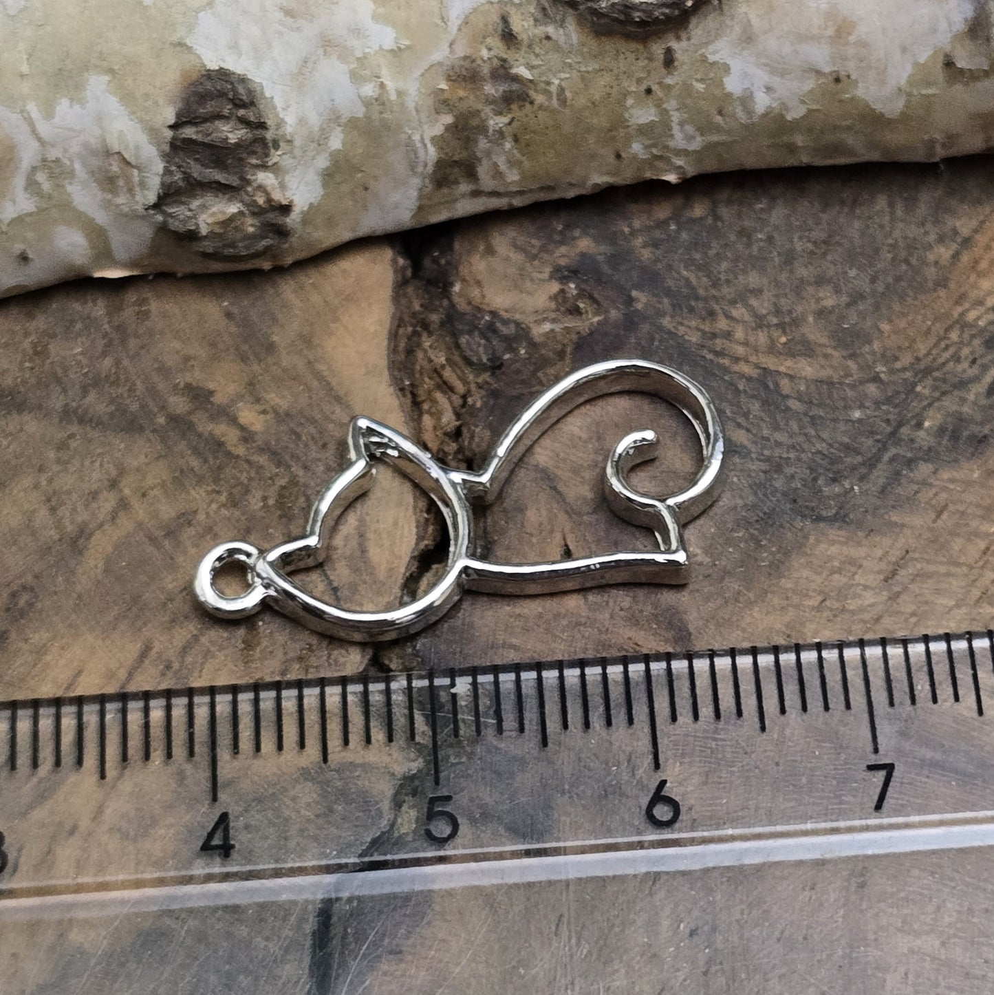 2 kleine Anhänger Katze, filigran - silberfarbig 25mm