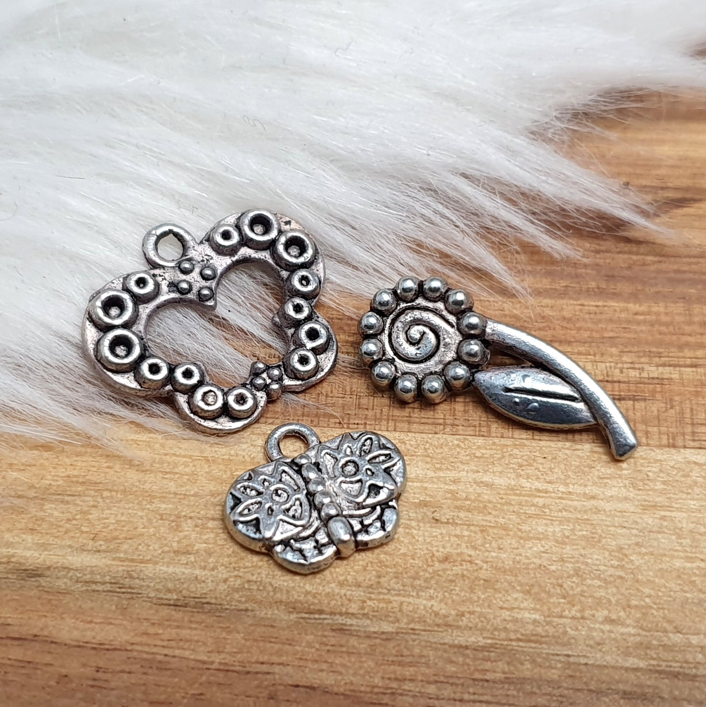 2 Knebelverschlüsse Schmetterling, antik silberfarbig, Schmuck Basteln