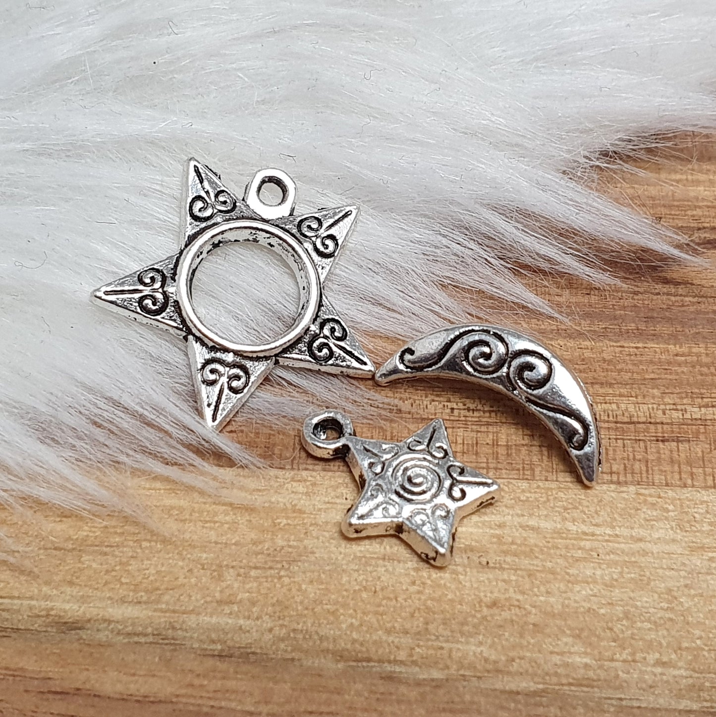 2 Knebelverschlüsse Stern, antik silberfarbig, Schmuck Basteln