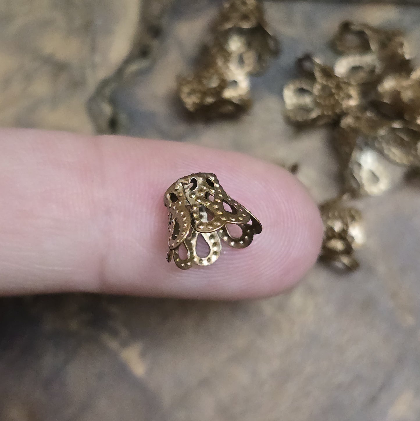 🗸 Perlen verzieren: Diese filigranen Kappen können verwendet werden, um größere Perlen oder Schmuckstücke zu umhüllen und ihnen ein elegantes Finish zu verleihen. Besonders bei runden oder tropfenförmigen Perlen wirken sie optisch aufwertend.