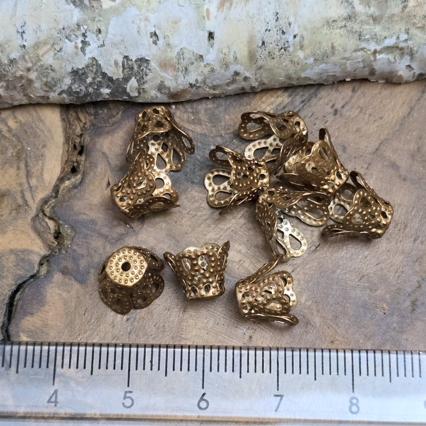 20 filigrane Perlenkappen - Körbchen antik kupfer - ca. 9 x 7 mm