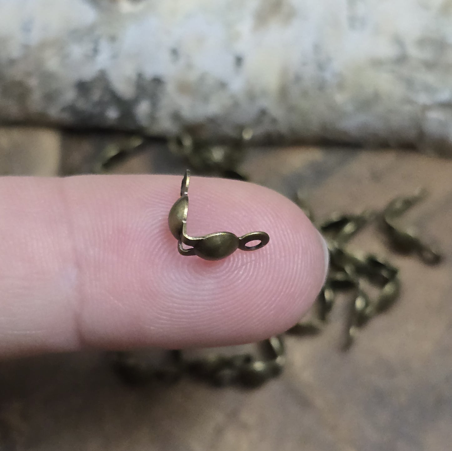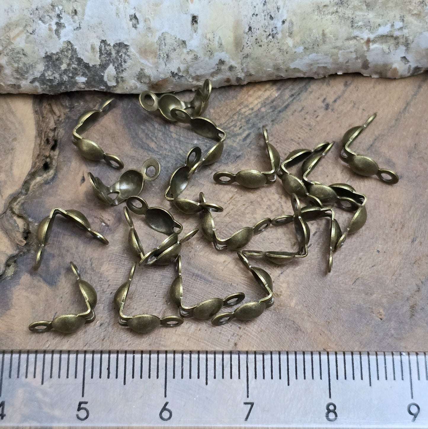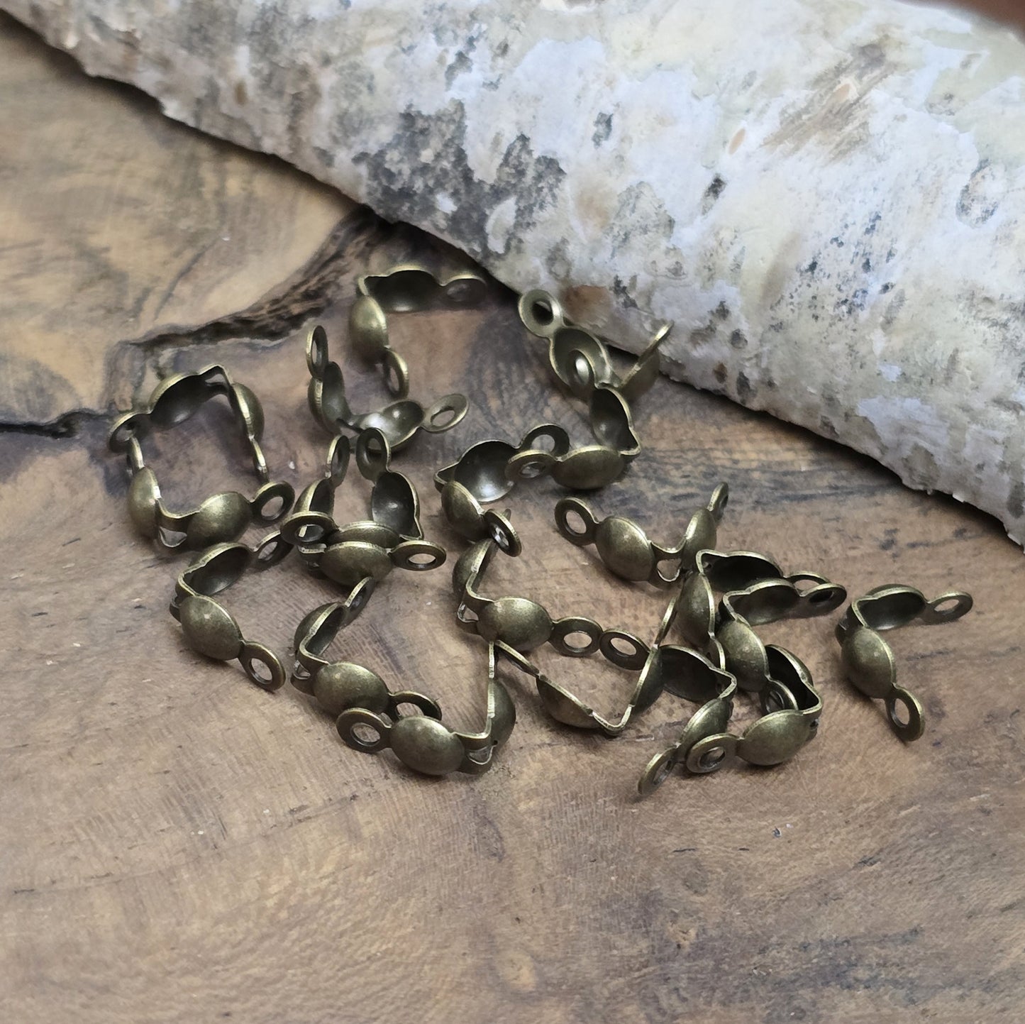 20 Quetschkalotten, Kugelkalotte, antik bronzefarbig, 3,9x7,5mm
