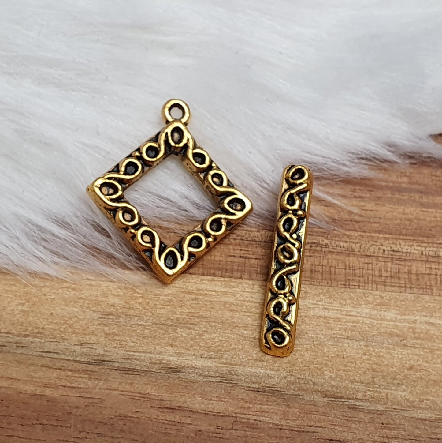 2x Knebelverschluss, antik goldfarbig, Ornamental, Schmuck basteln