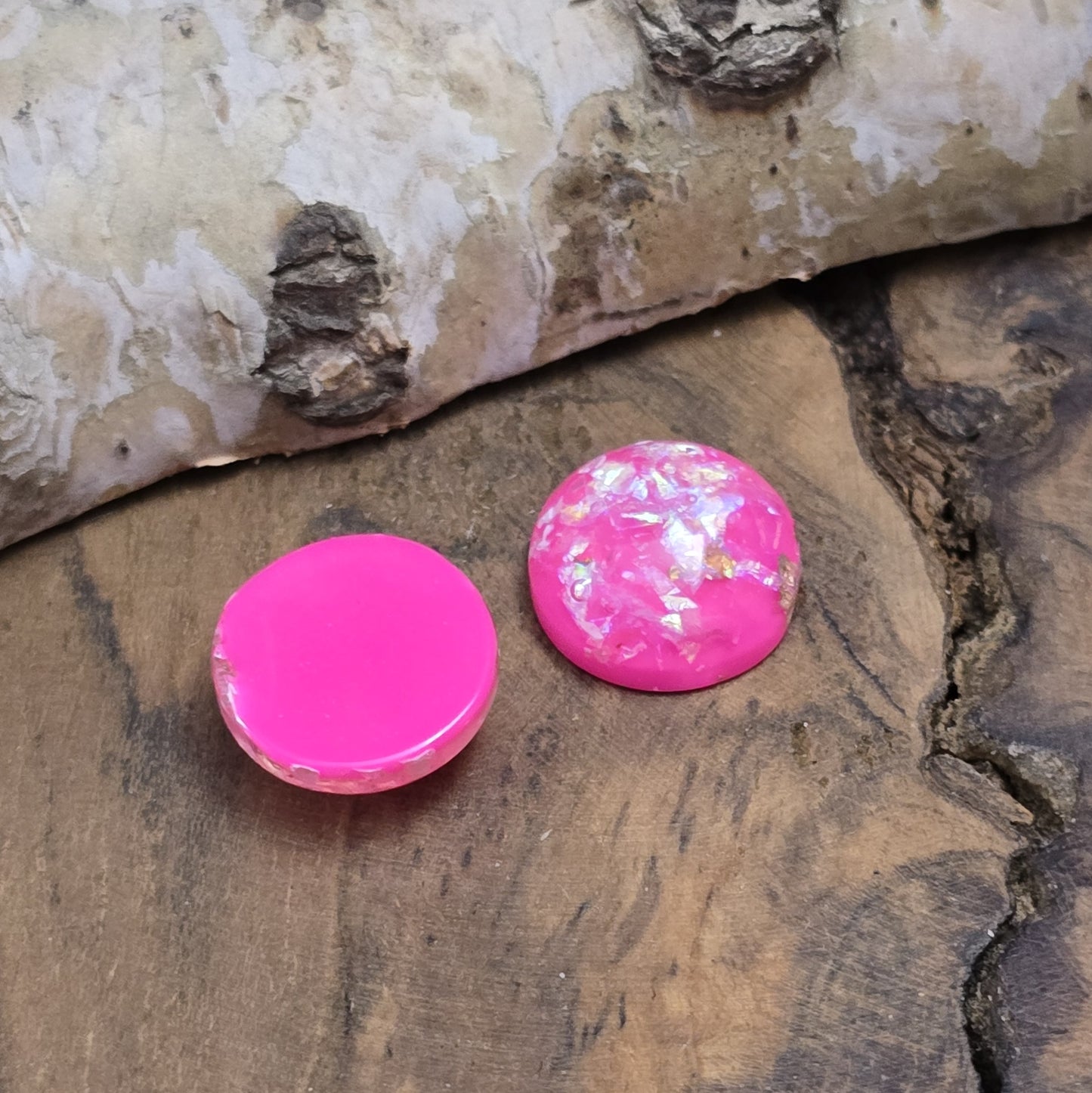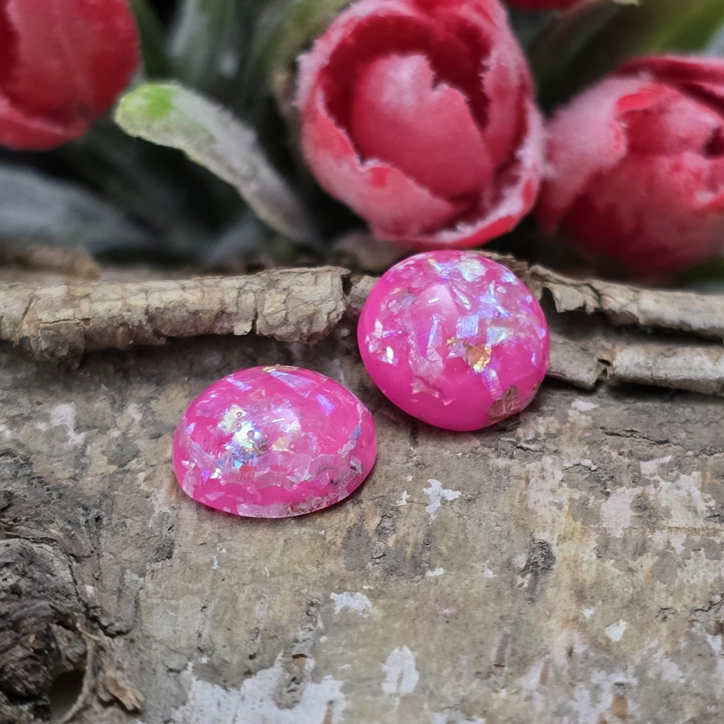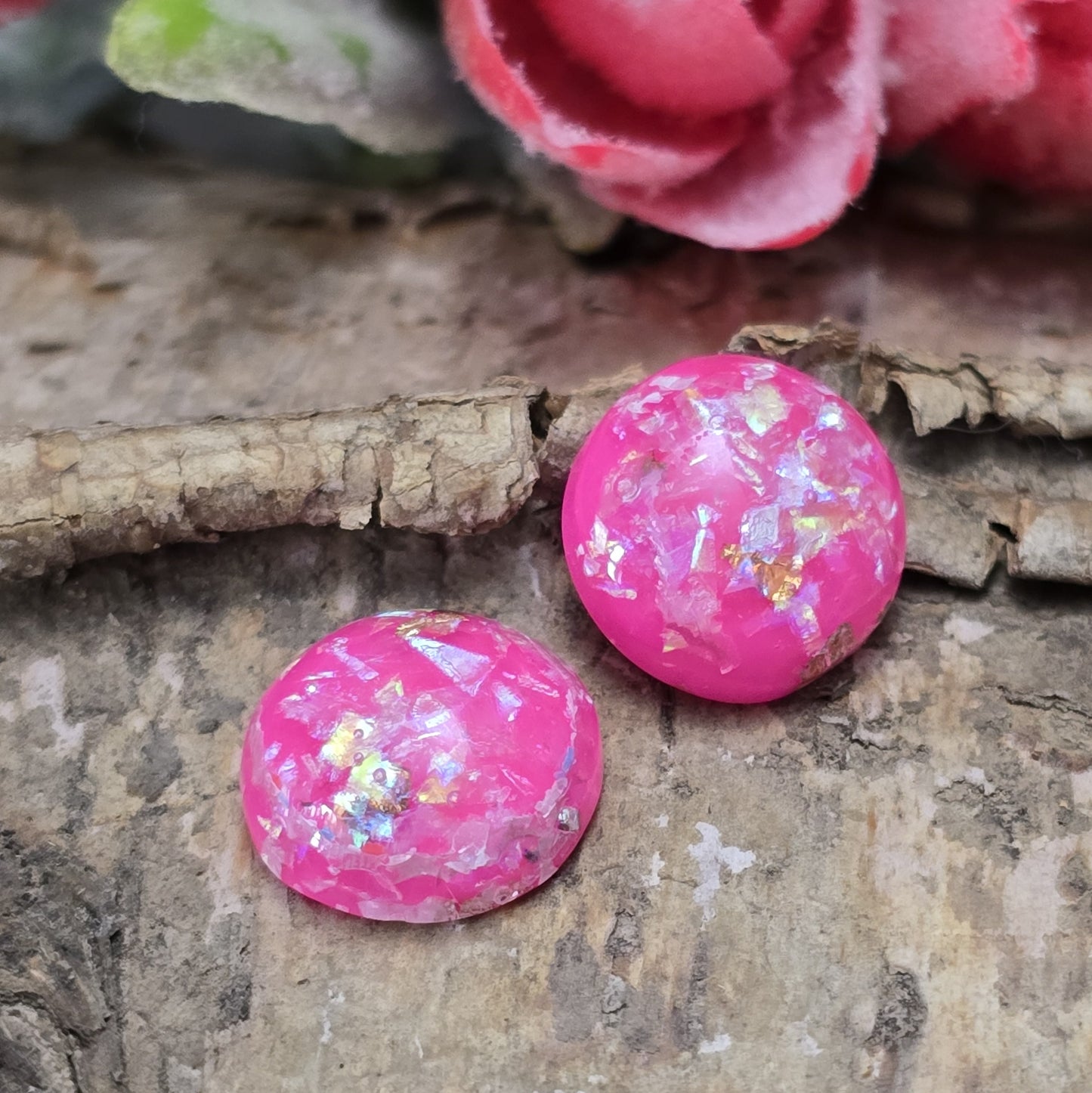 Diese runden Cabochons (12mm) in leuchtendem Pink mit schimmernden Flakes bringen Farbe und Eleganz in deine Schmuckkreationen. Die funkelnden Flakes sorgen für ein faszinierendes Lichtspiel und machen jedes Design zu einem echten Hingucker – perfekt für feminine, verspielte und trendige Accessoires.