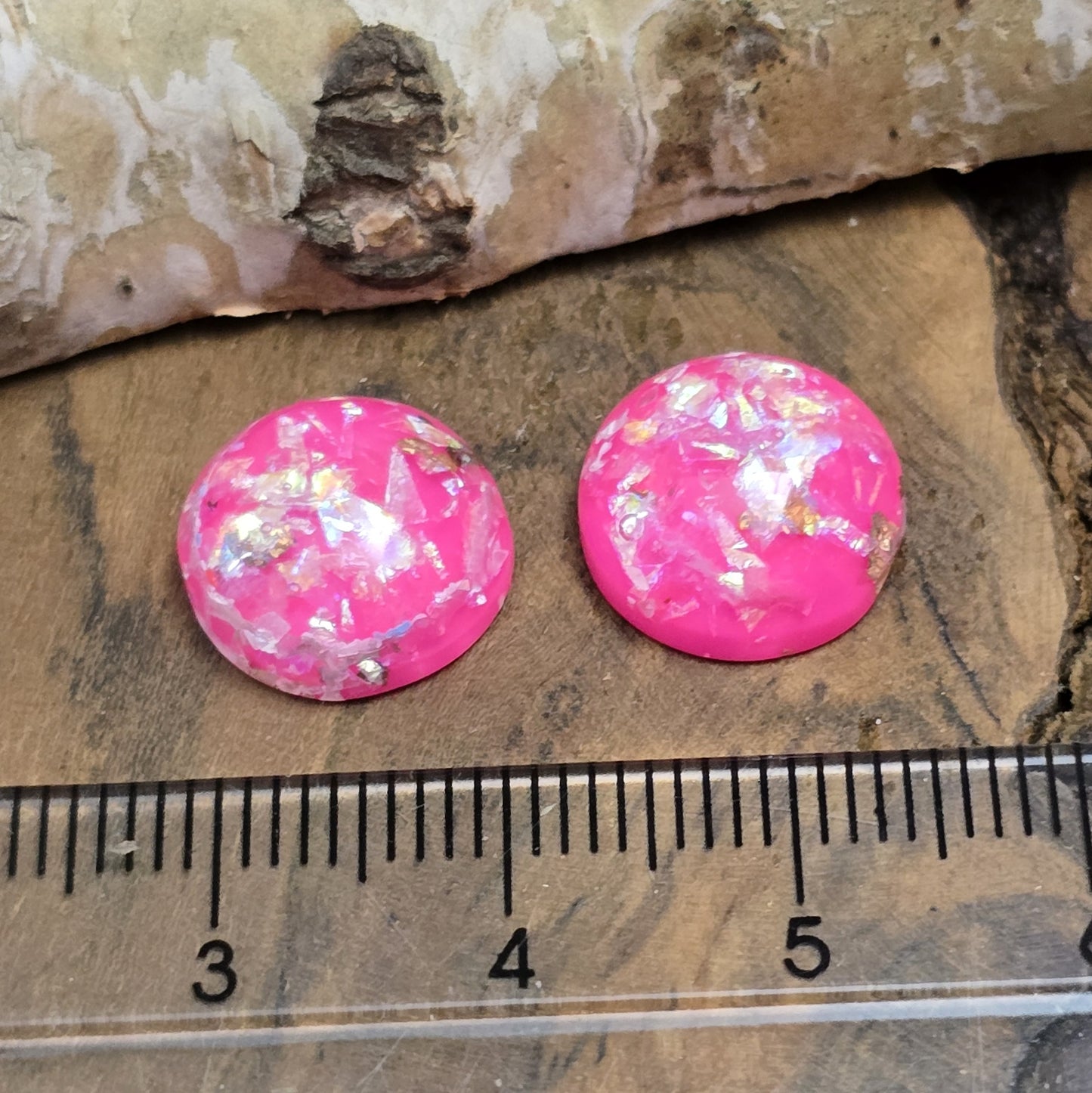 4 Cabochons rund – 12mm – Pink mit Flakes – Strahlende Akzente für Schmuck & DIY-Projekte ✨