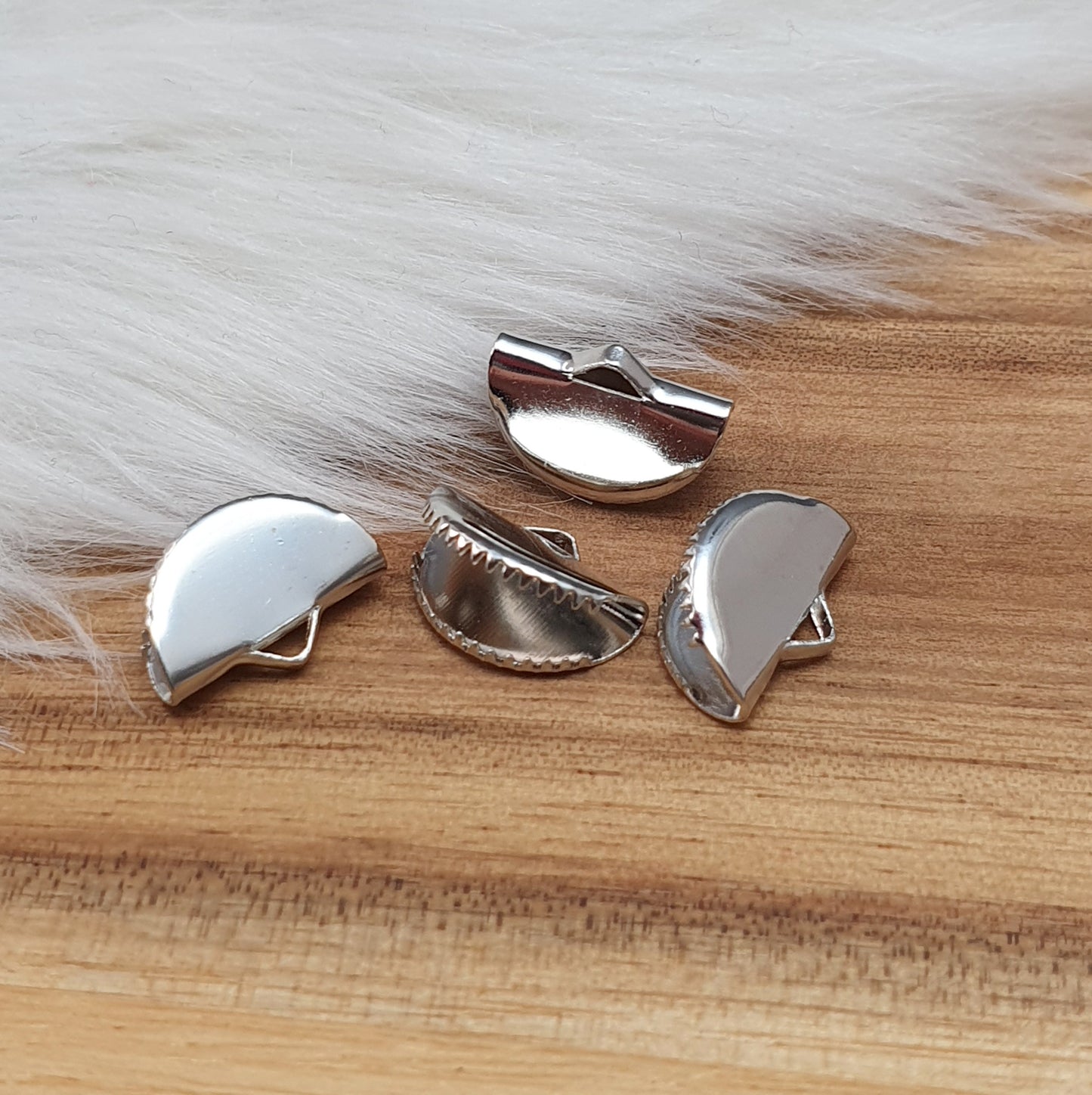 4 halbrunde Bandklemmen, Leder, Stoff, 13 mm, platinfarbig