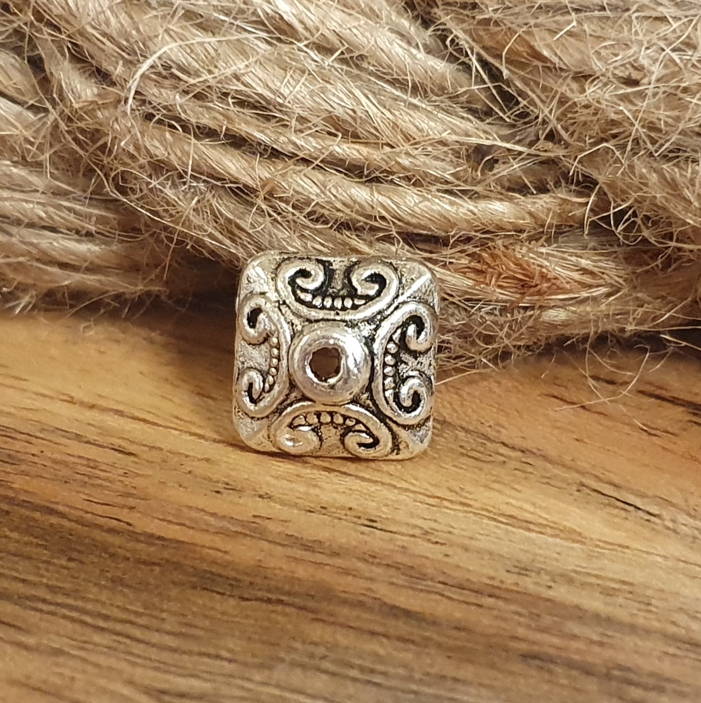 6 tolle Perlenkappen in 4eck-Form mit Schnörkeldesign und antikem Finish.