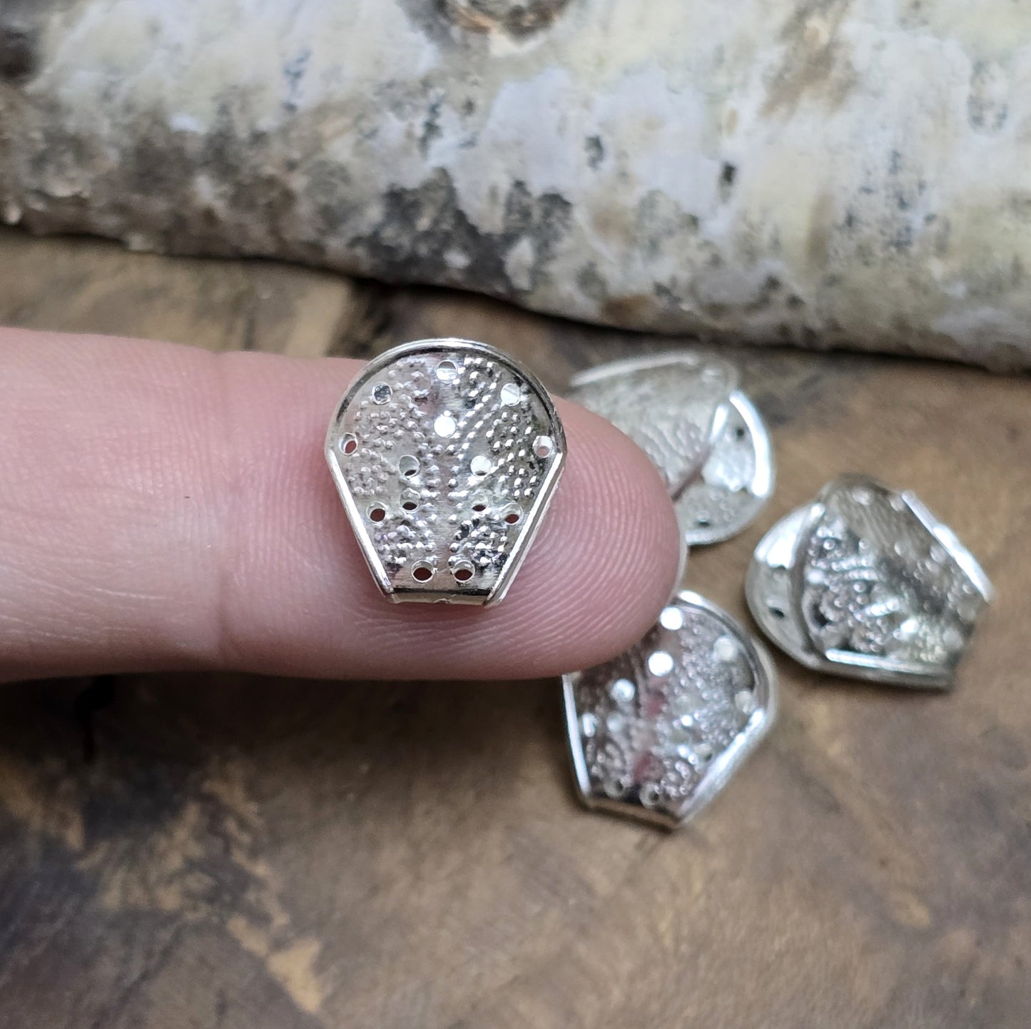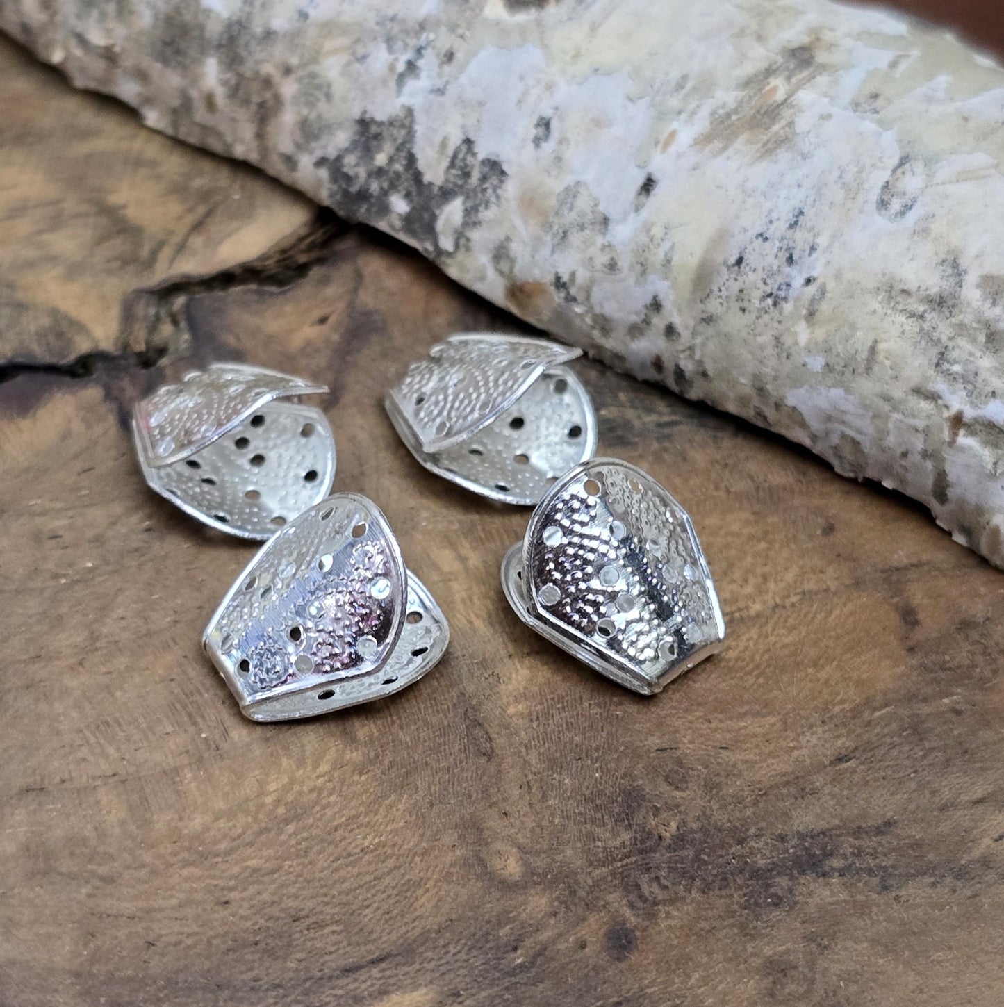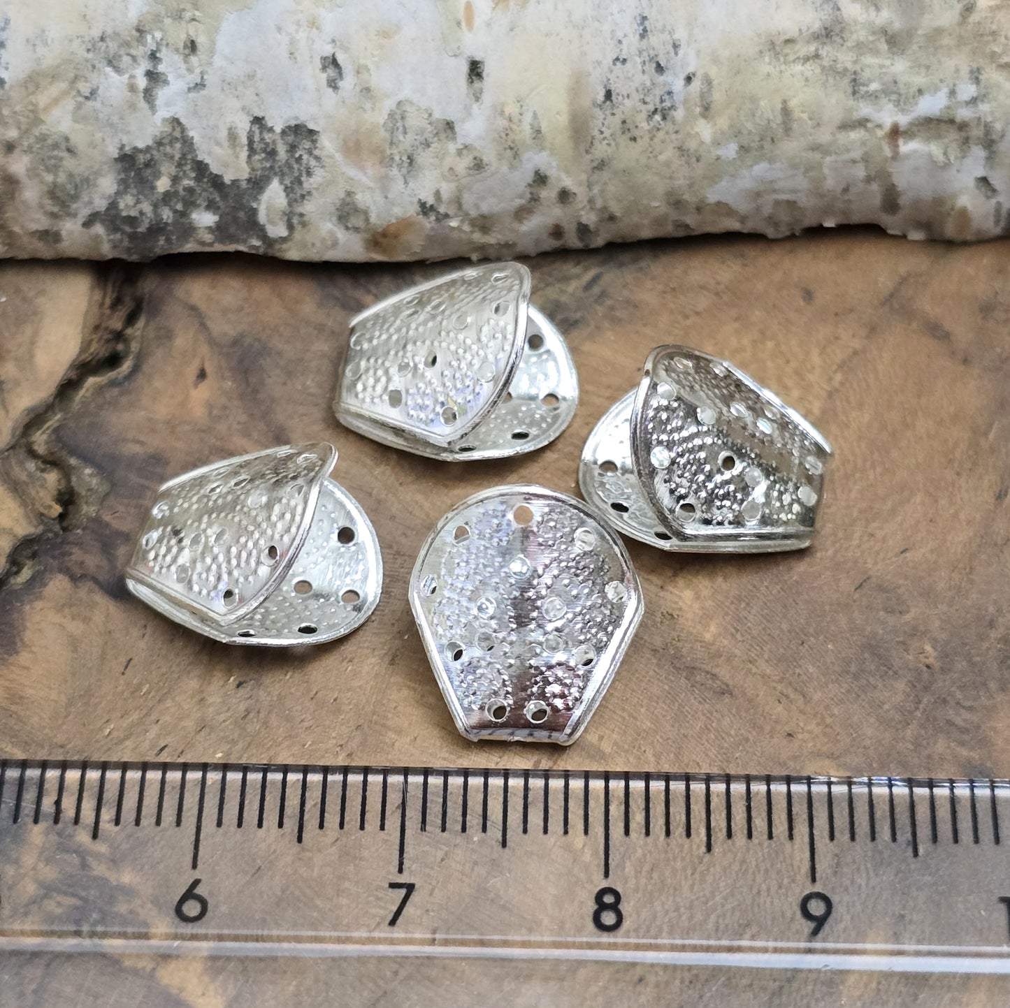Diese Bandenden sind perfekt für breite, weiche Stoffbänder wie Organza, Satin oder Chiffon. Um sie zu befestigen, kannst du das Bandende raffen, mit einem Perlenfaden umwickeln und diesen durch das Loch in der Kappe fädeln. Mit einer Perle und einem Crimp gesichert, wird die Kappe anschließend zusammengedrückt – fertig ist die stabile Schlaufe für Verschlüsse oder Dekorationen.