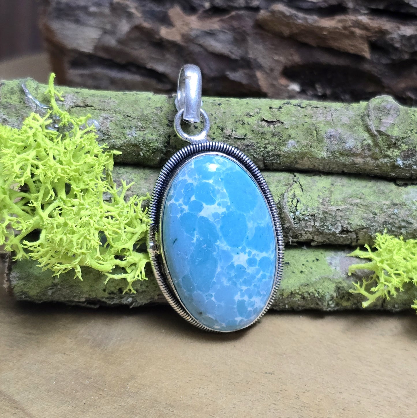 .925 Sterling Silber Anhänger, ovalem Larimar (Nachbildung)