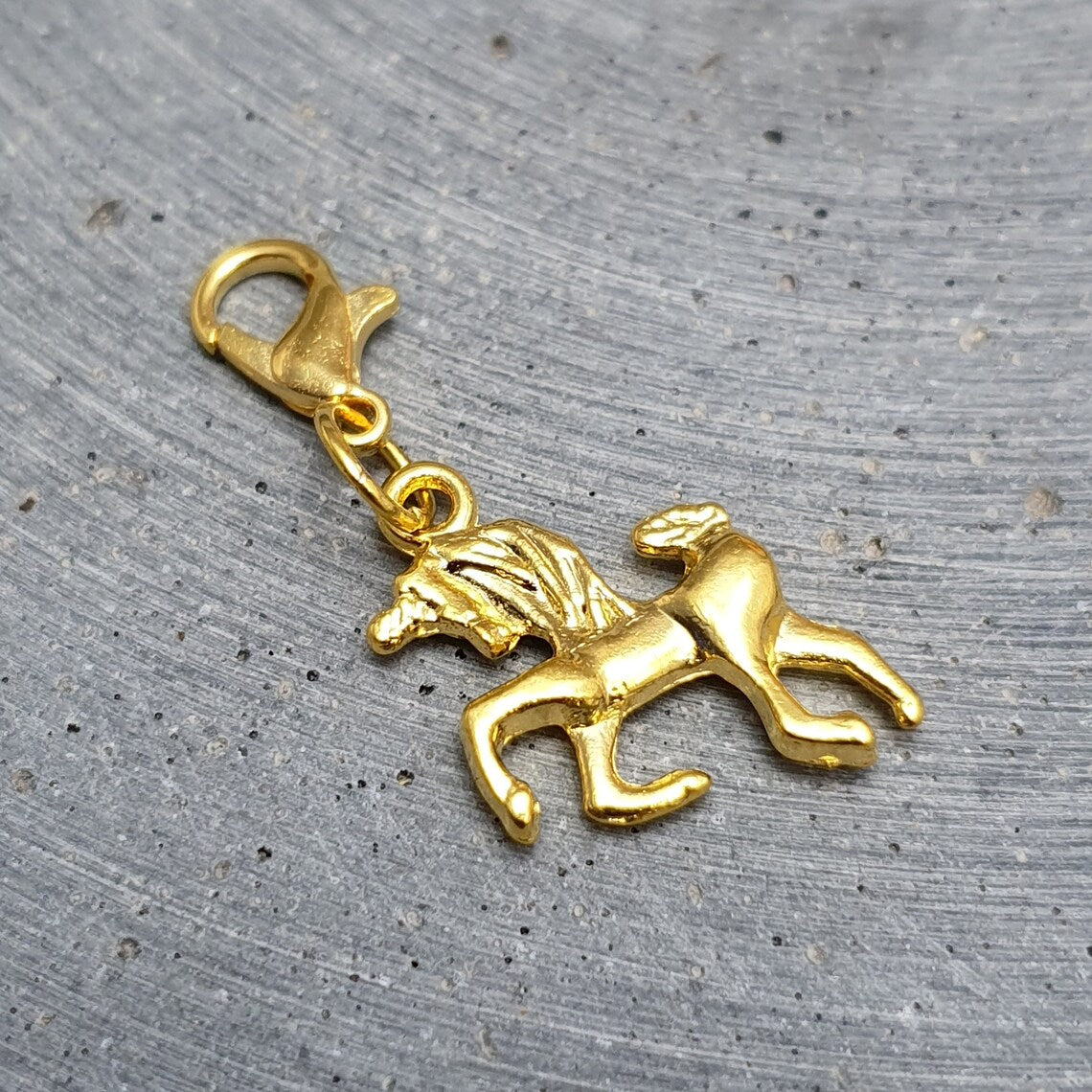 Charms Anhänger Einhorn mit Karabiner, vergoldet
