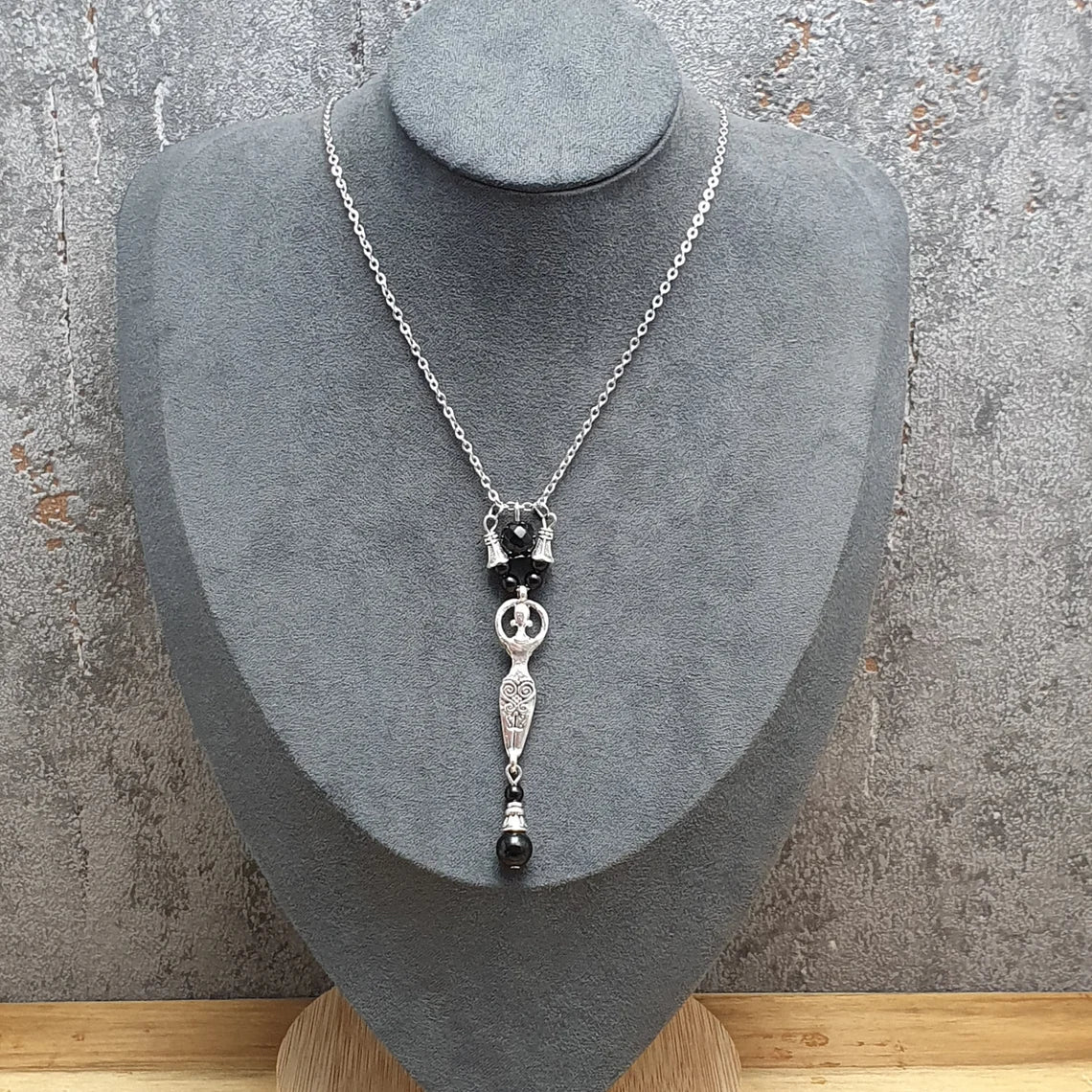 Edelstahlkette mit Anhänger Göttin, mit Onyxperlen