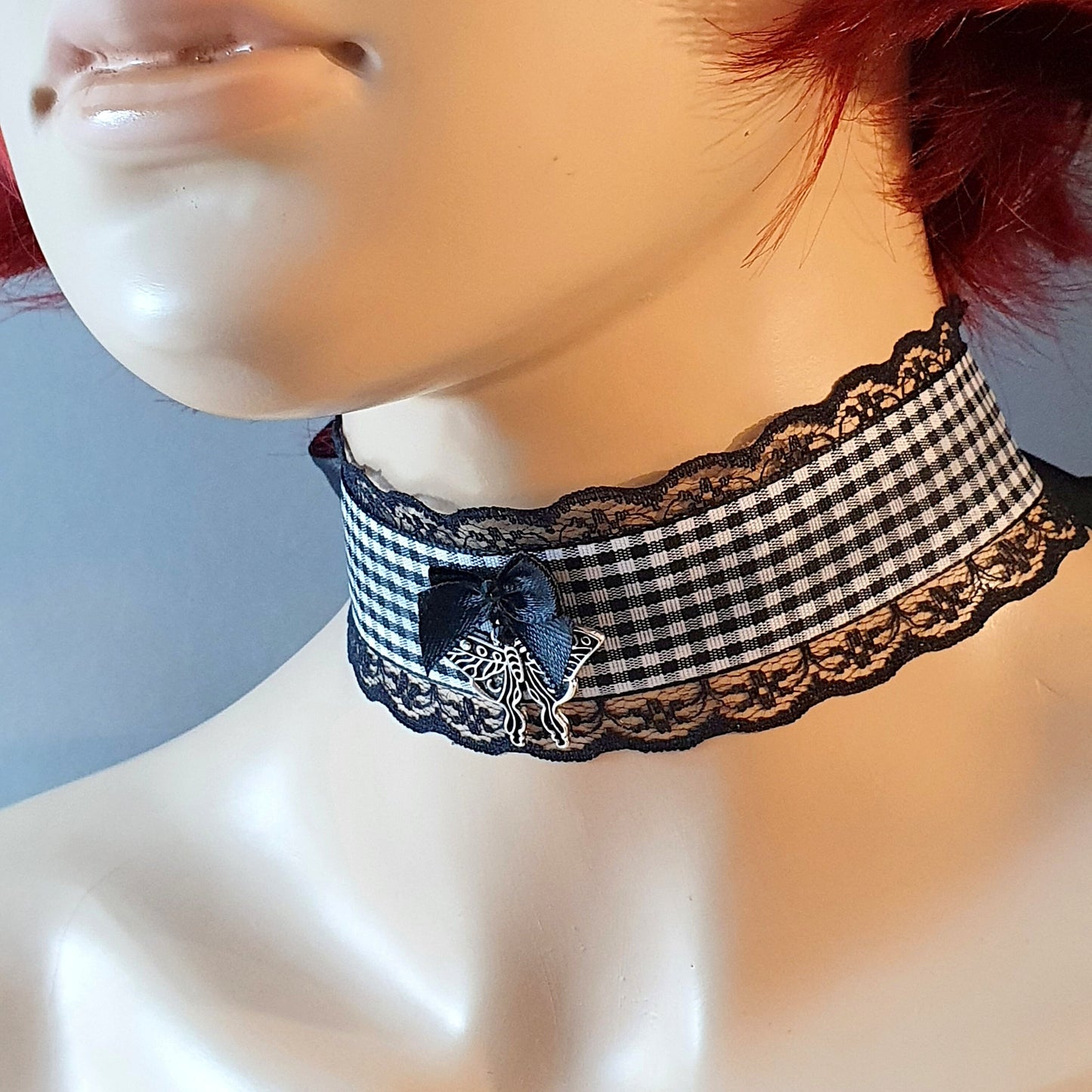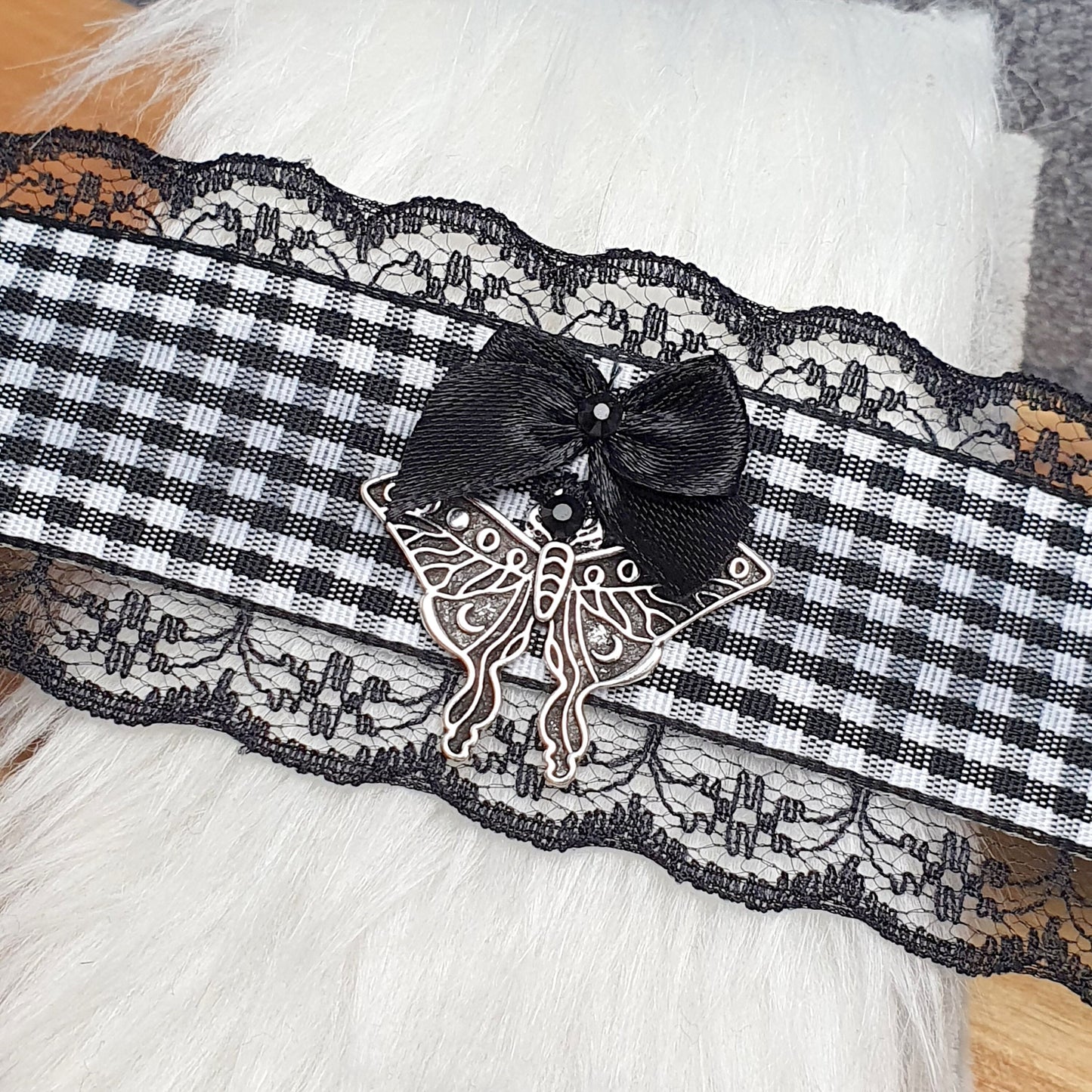Choker mit schwarz/weißem Karoband, Nachtschwärmer, Unisize