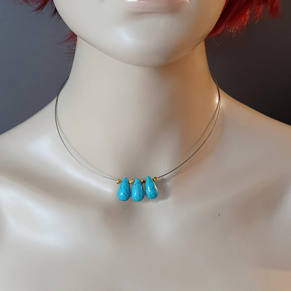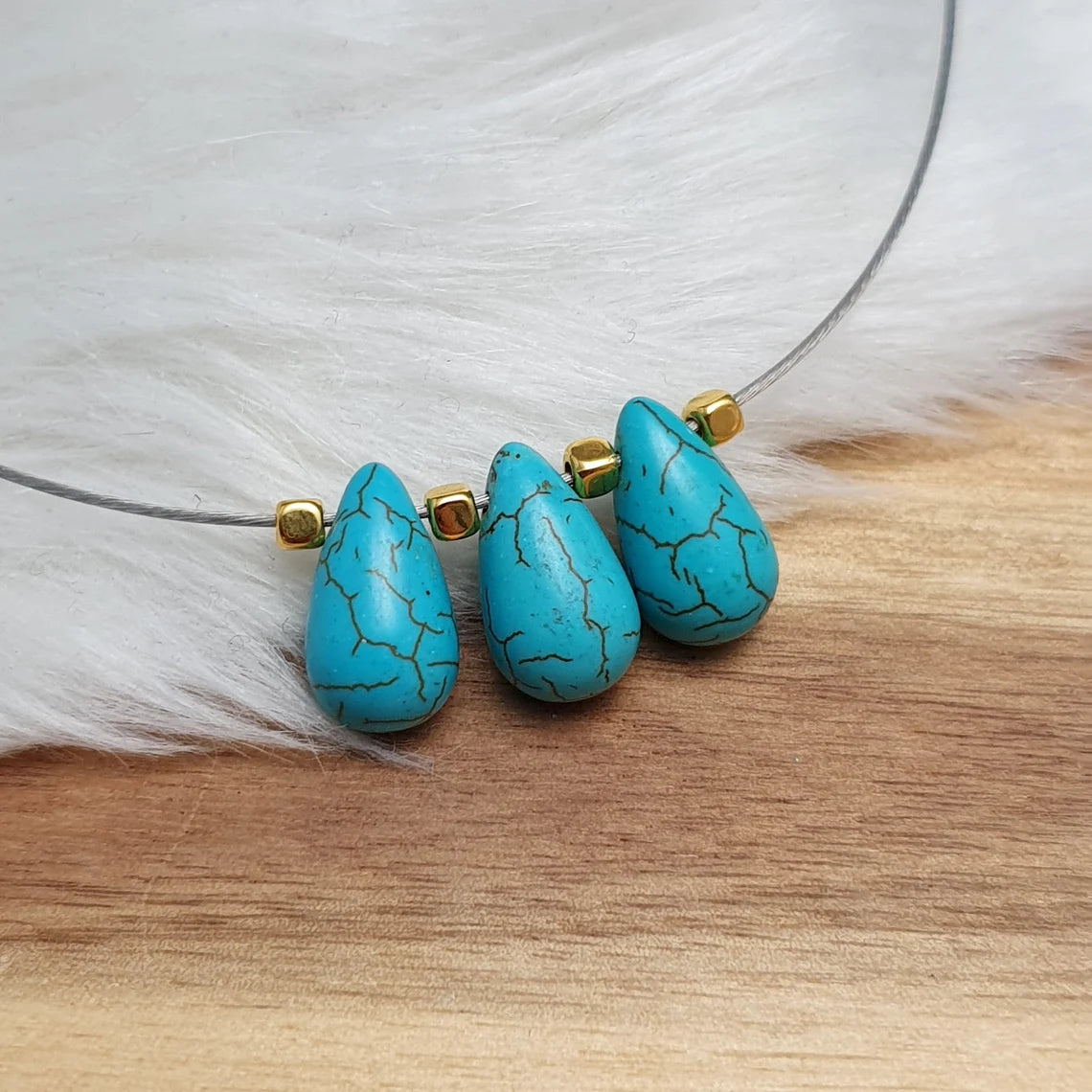 Mit kleinen goldfarbigen Würfelperlen zwischen den Tropfen habe ich kleine Akzente gesetzt.