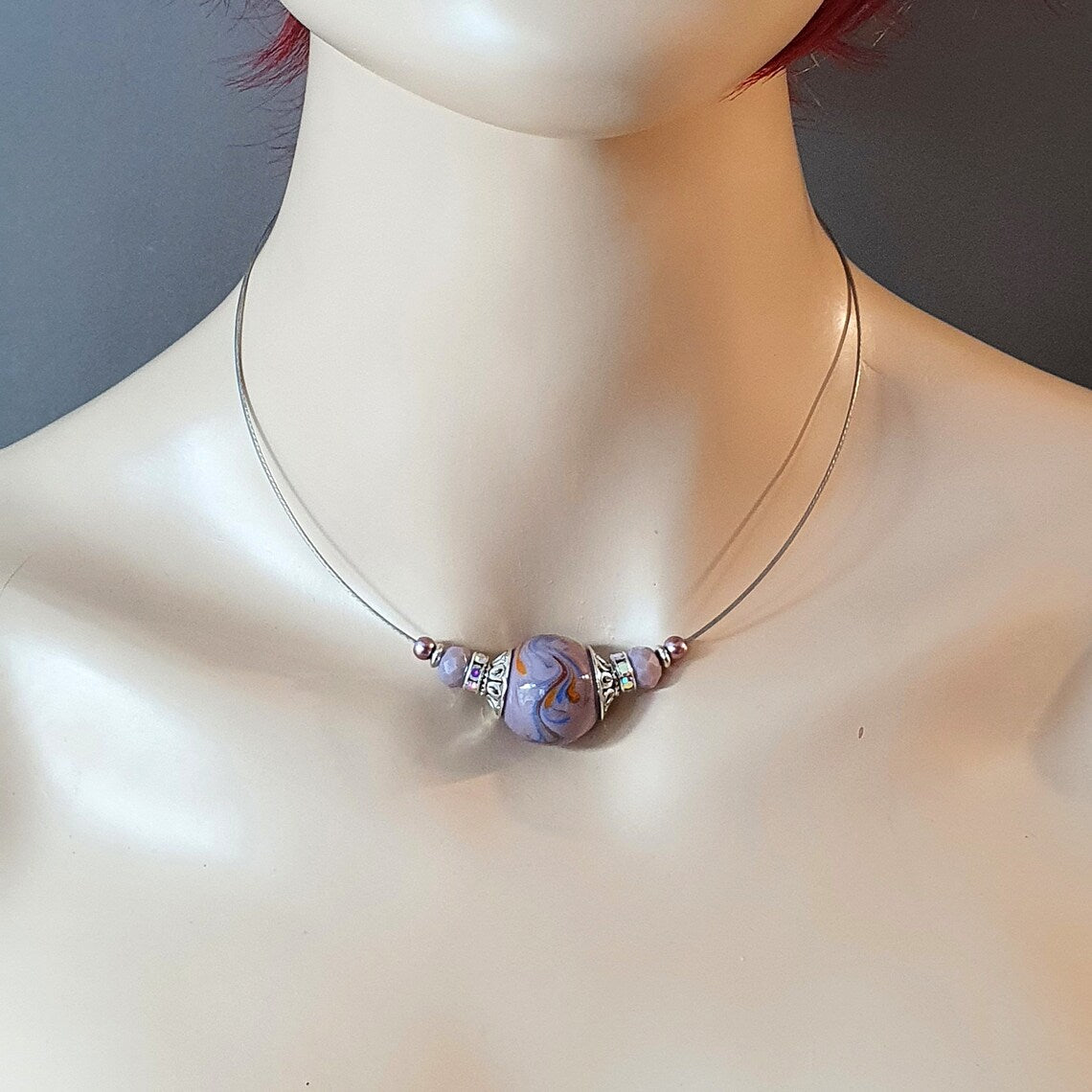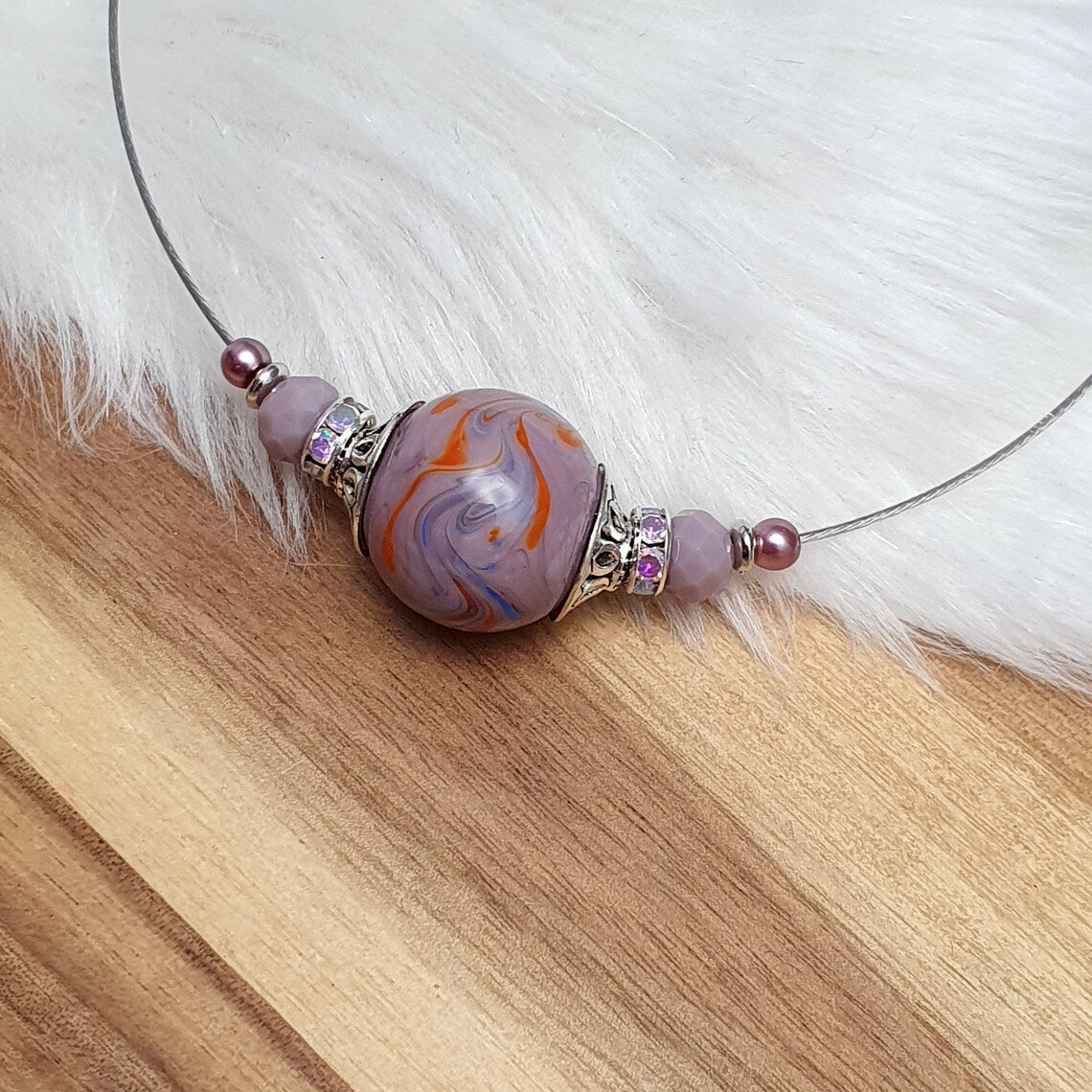 Halsreif mit großer Glasperle, Mauve, Glasperlen, Strass