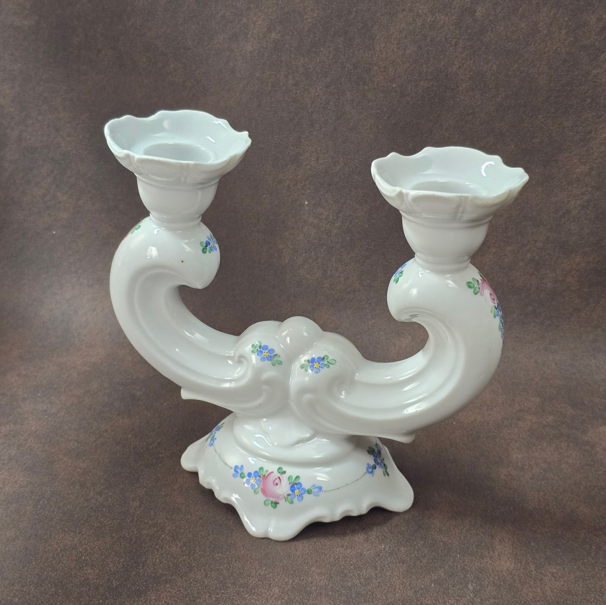 Handbemalter Porzellan-Kerzenständer • Zweiarmig • DDR Vintage