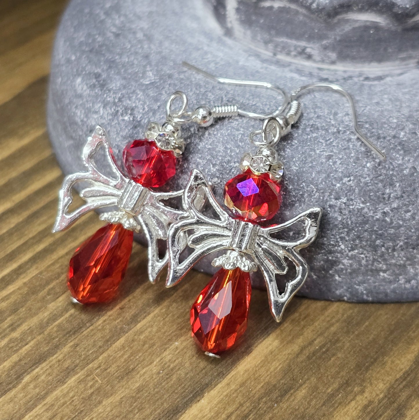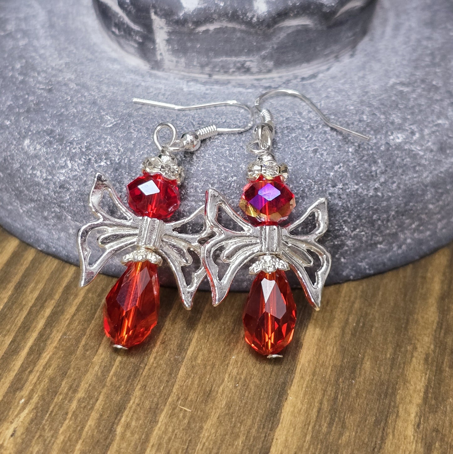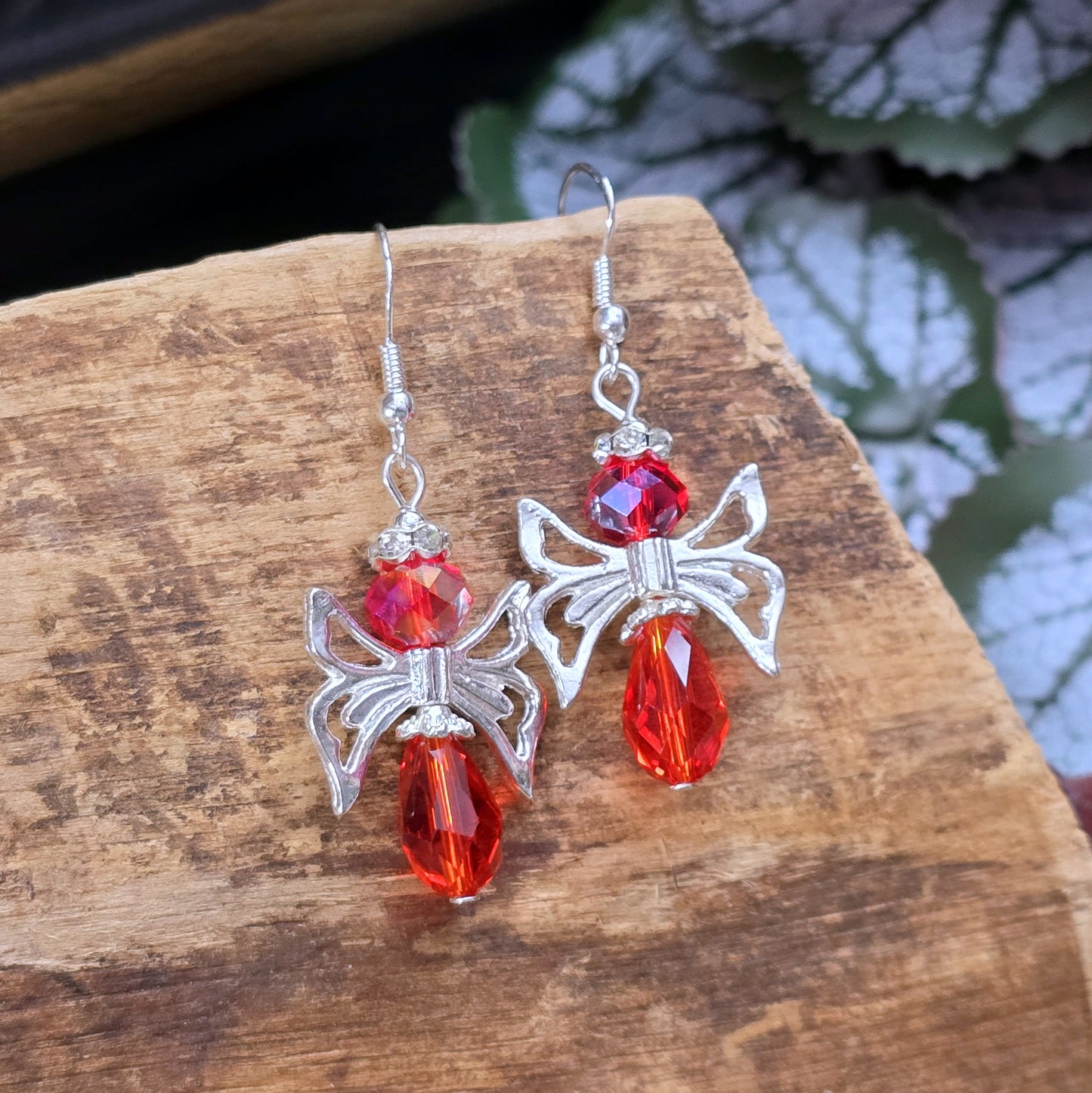 Handgefertigte Ohrhänger Schmetterlingsfee .925 Silber mit rotem Kristallglas
