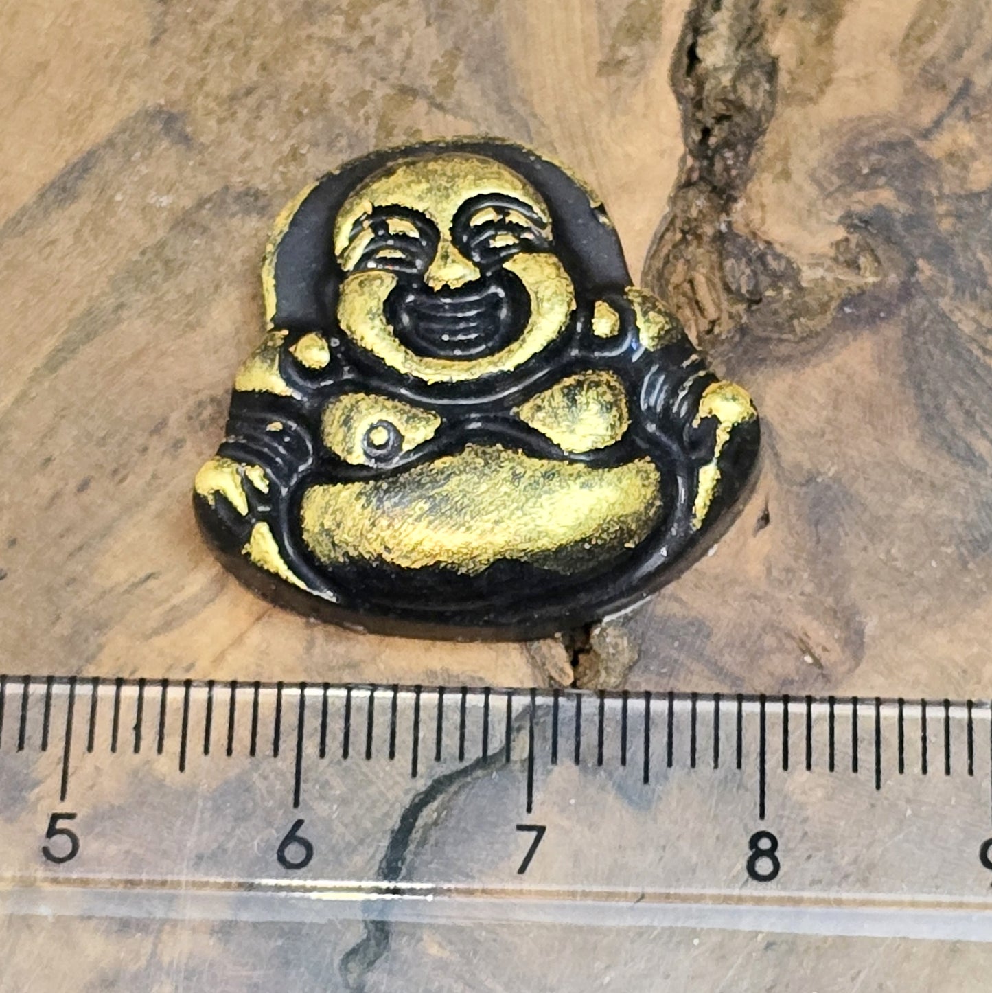Handgefertigter Anhänger/Cabochon "Lachender Buddha" aus Kunstharz – Schwarz/Bronze