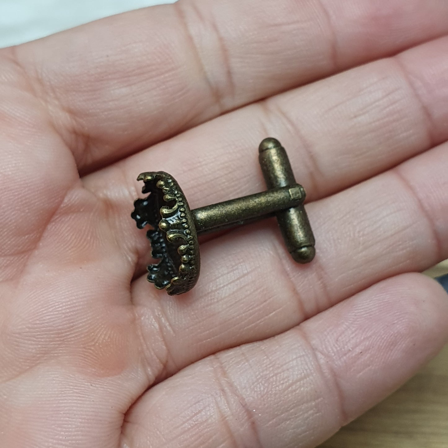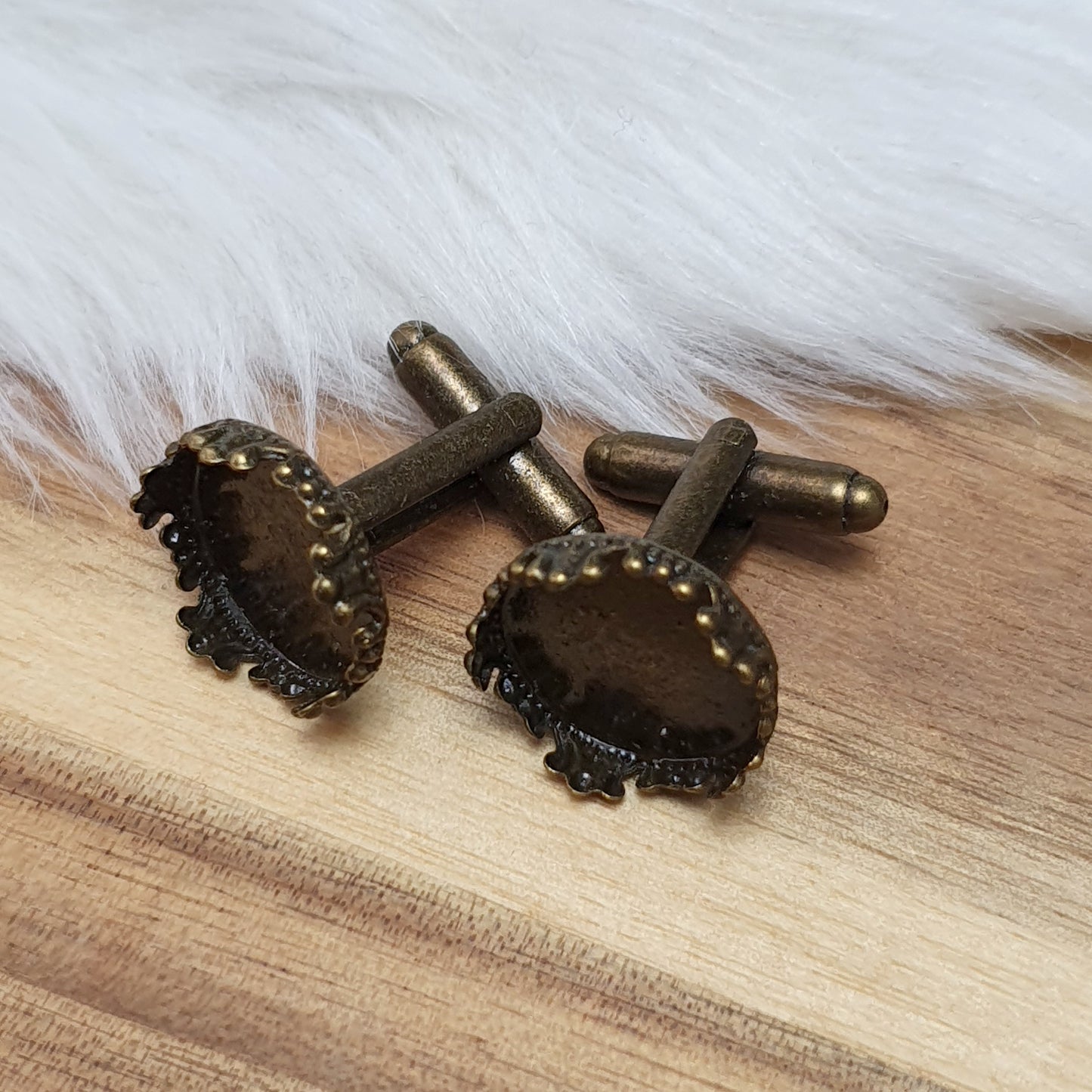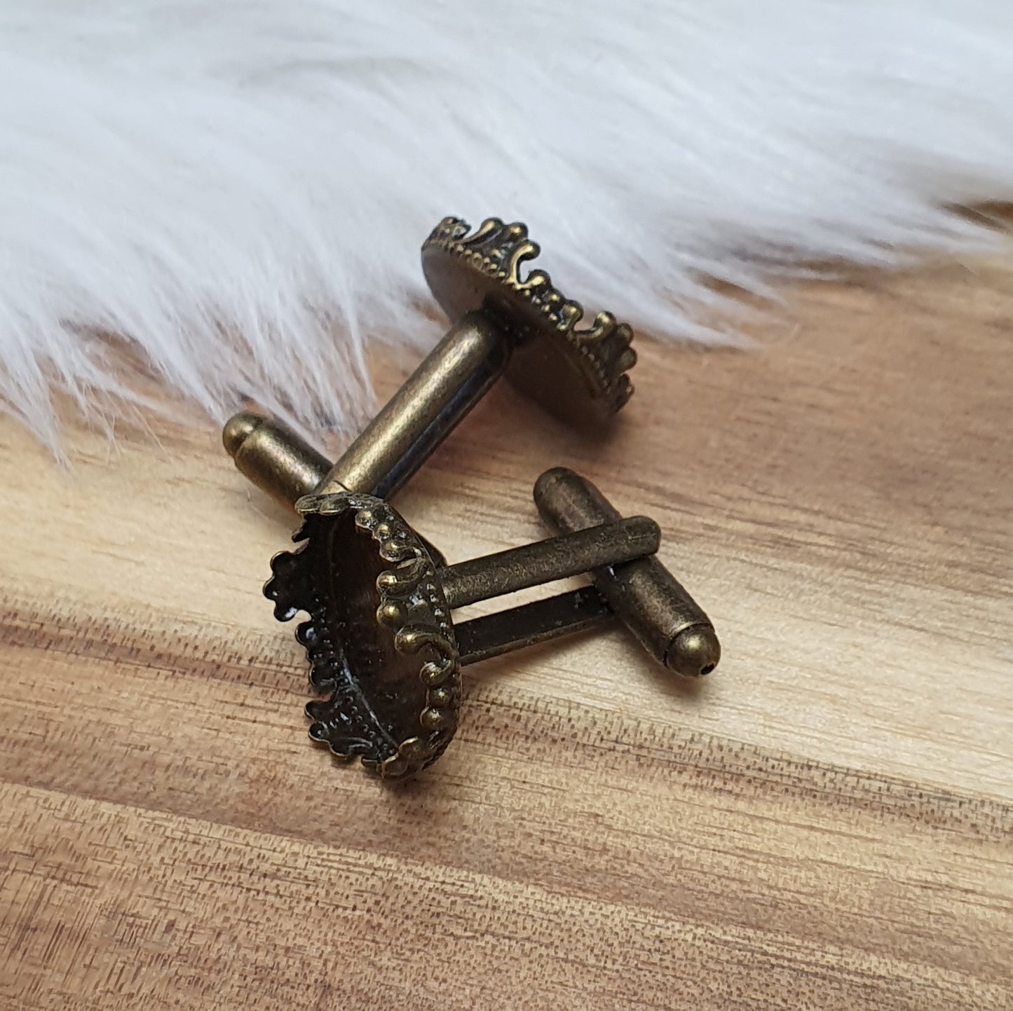 2 Manschettenknöpfe mit Klebefläche 15mm, antik bronzefarbig
