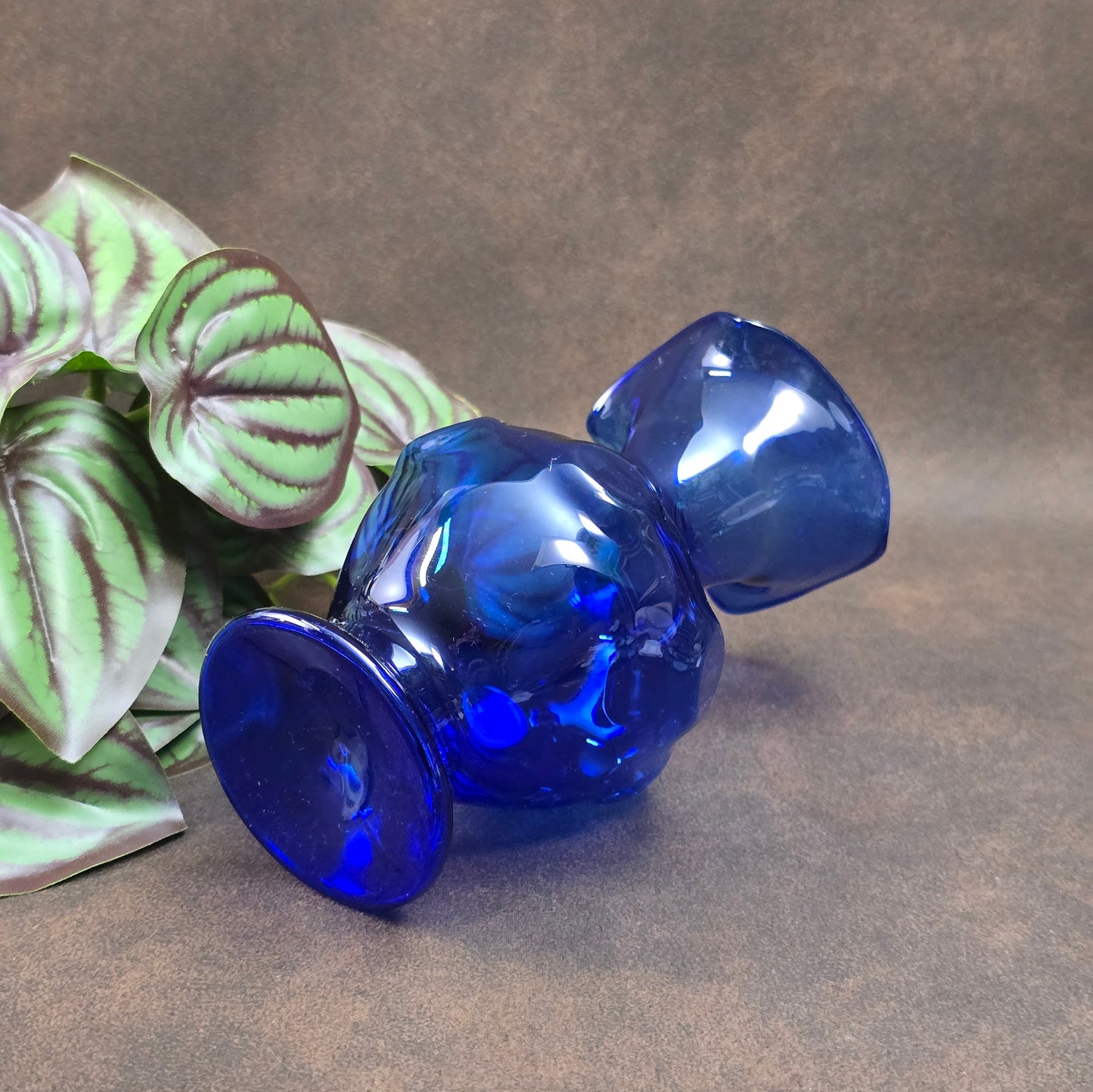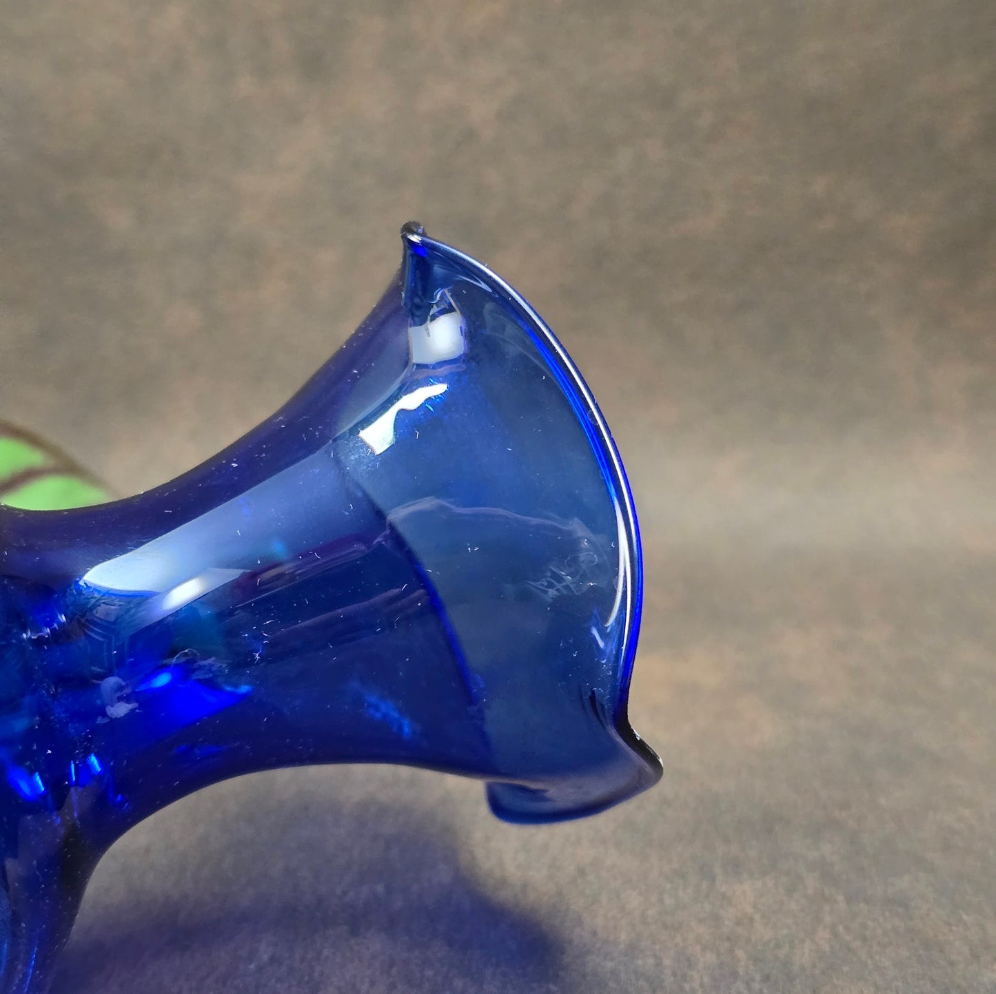 Lauscha Glasvase Blau · Vintage Blumenvase 14cm Handarbeit