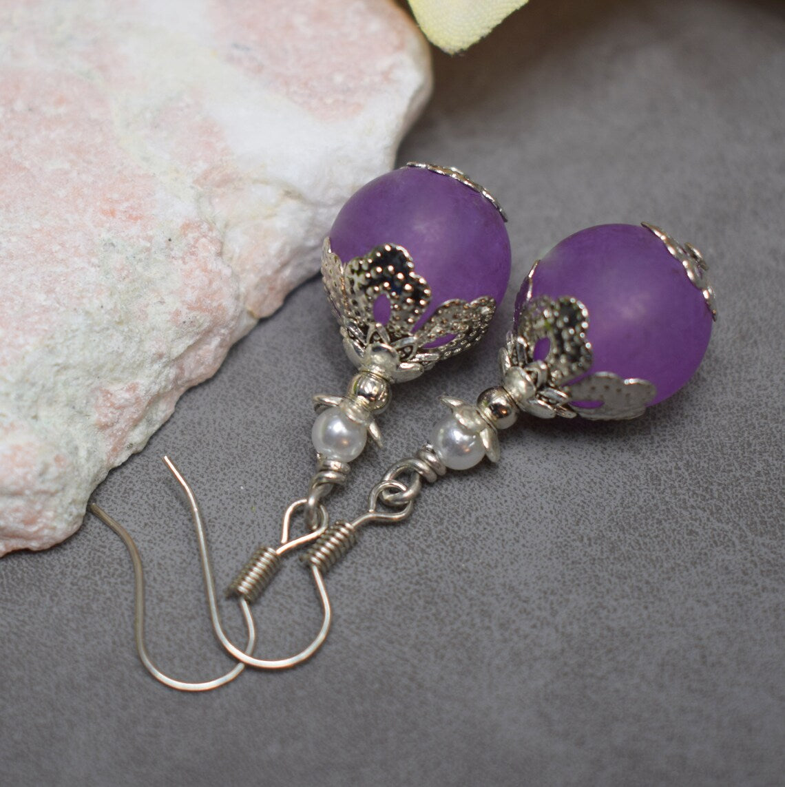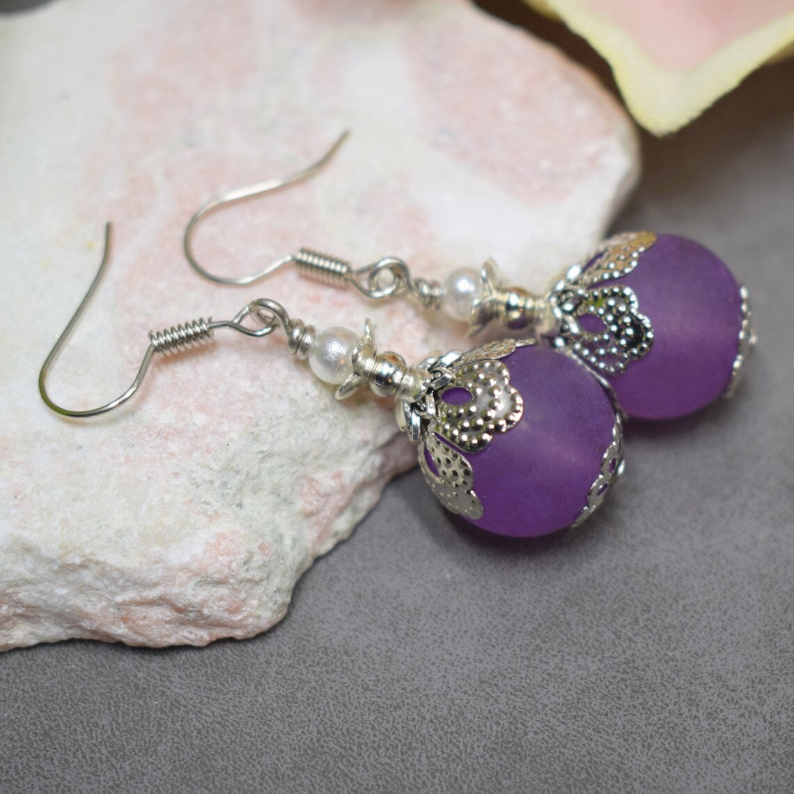 Ohrhänger mit lila Kugel, kleine Hängerchen