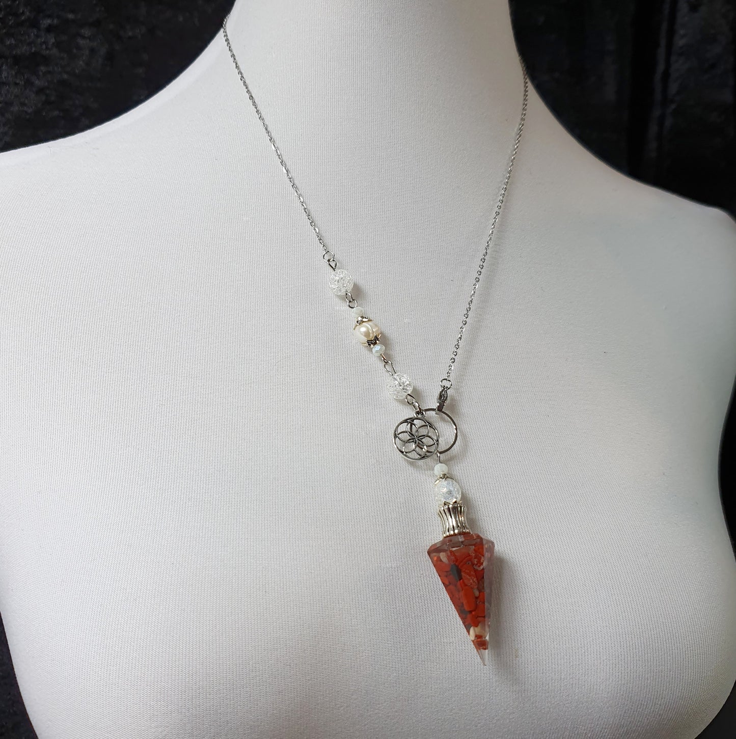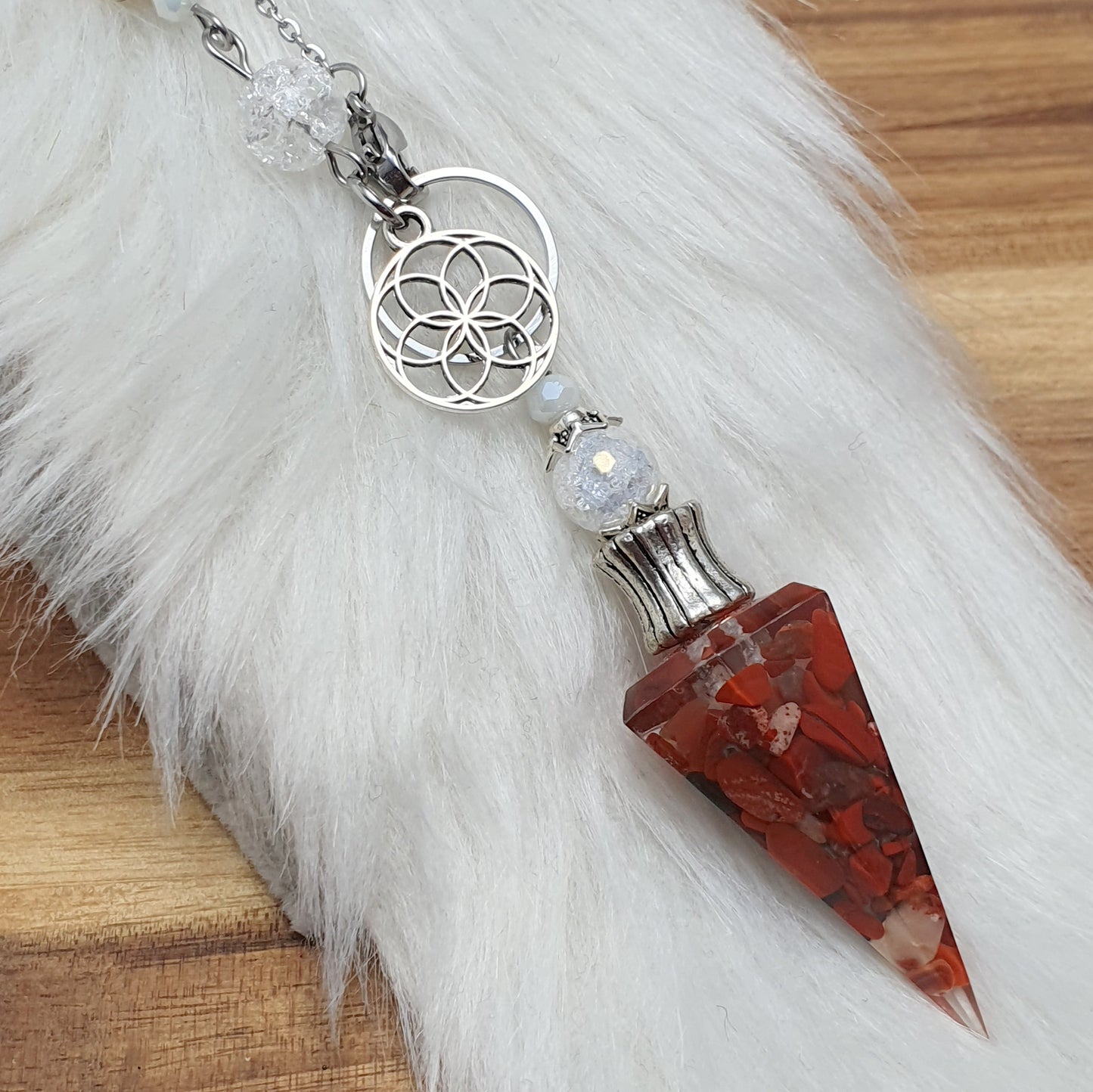 Pendelkette, Pendel Jaspis mit Blume des Lebens, Schutz, Stärke und Mut