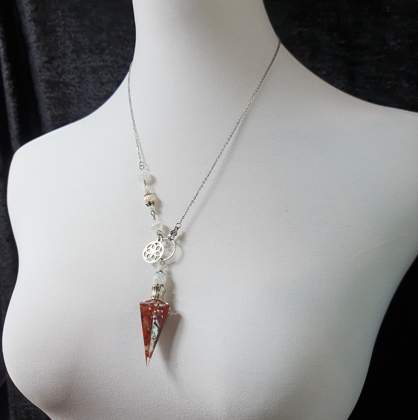 Handgefertigtes Pendel aus Resin, gefüllt mit Brekzien Jaspis.
