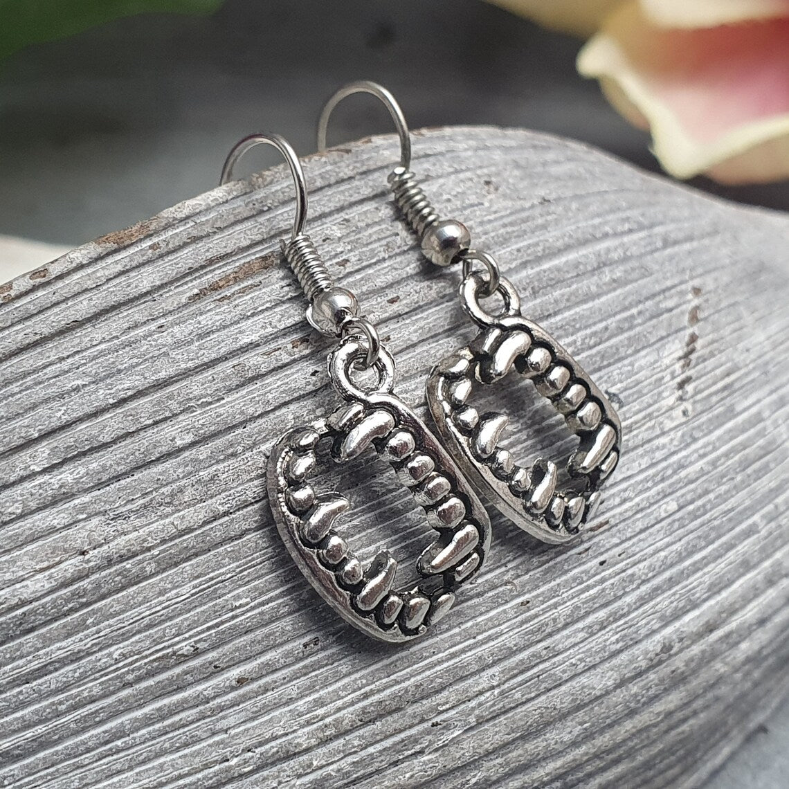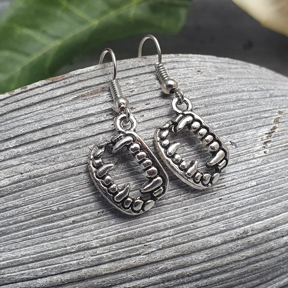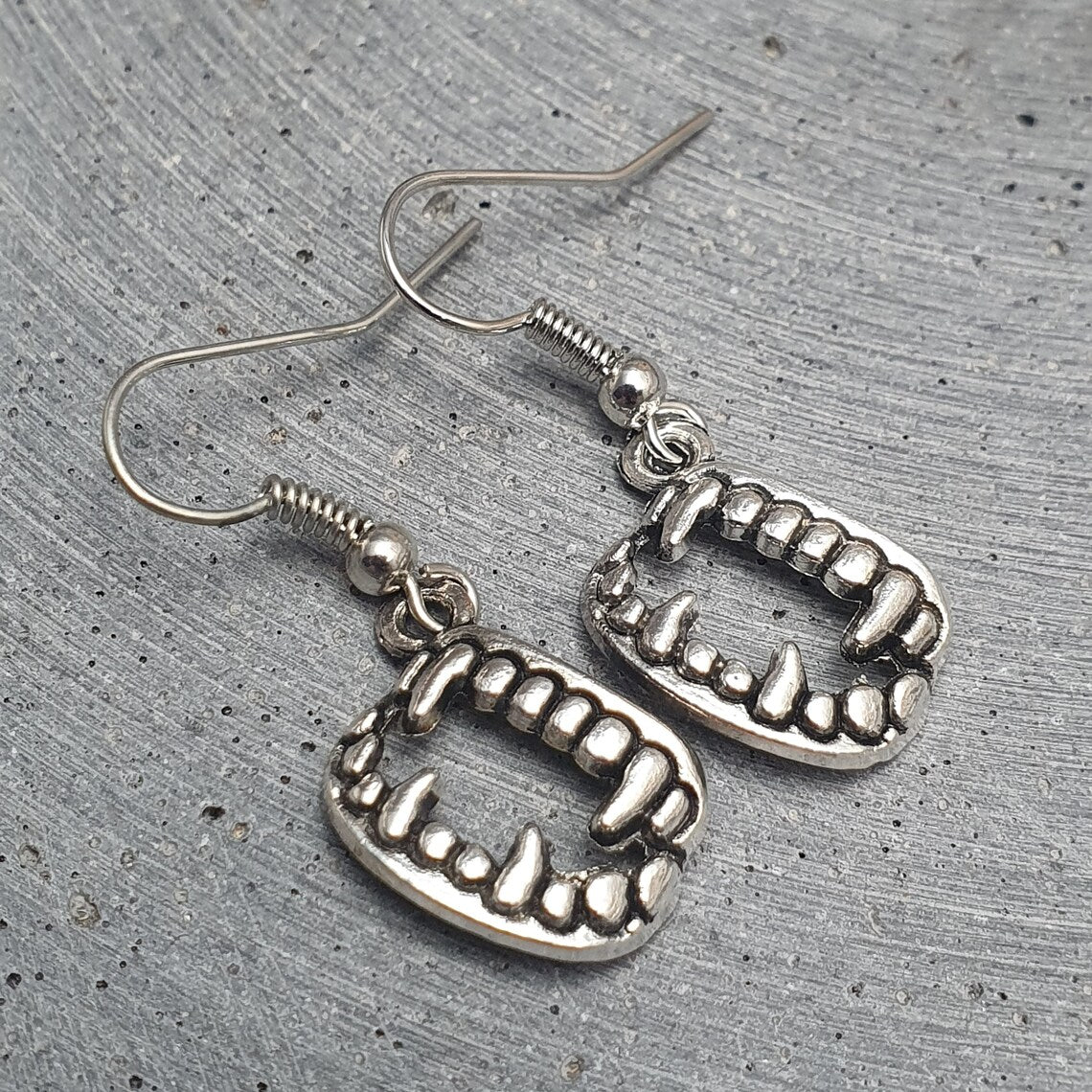 Schaurig schöne Ohrhänger Vampir Zähne in antik silberfarbig